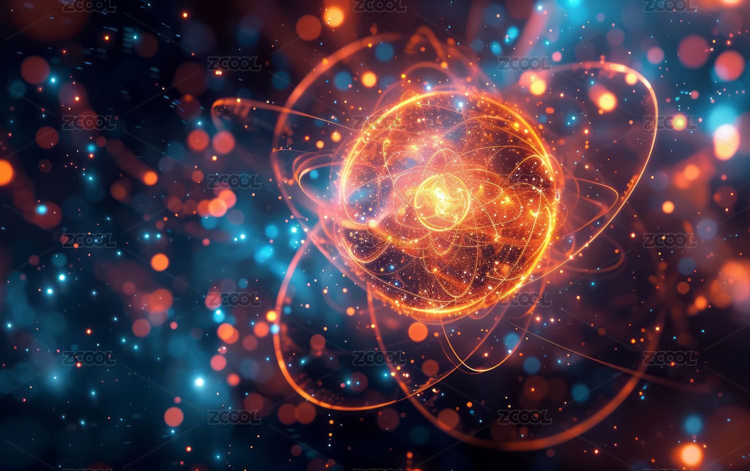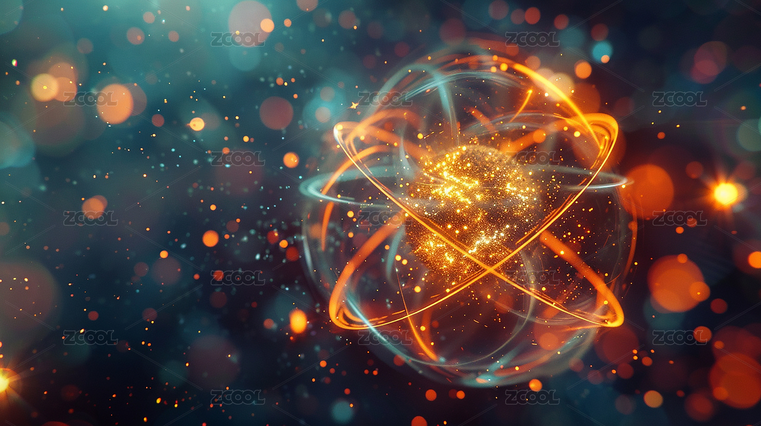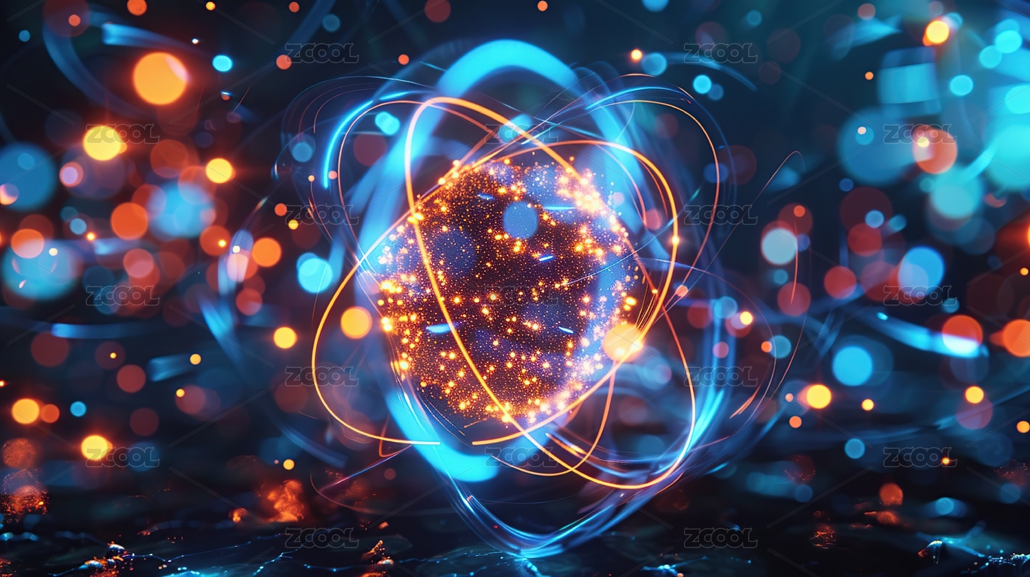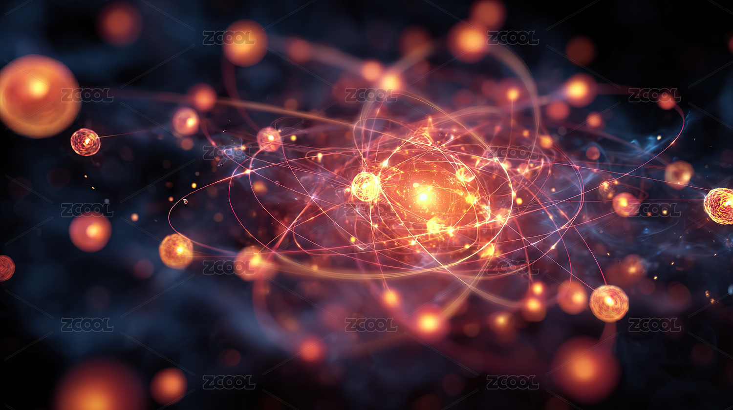 科技感3D渲染原子核结构背景