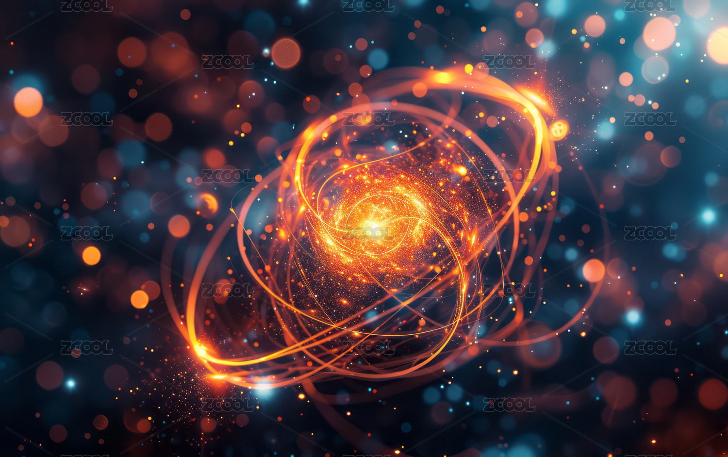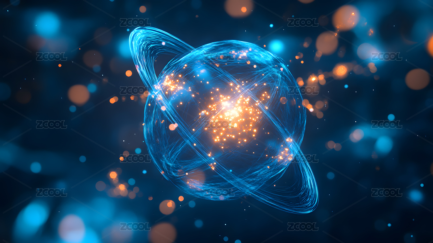 蓝色能量原子结构高清图片