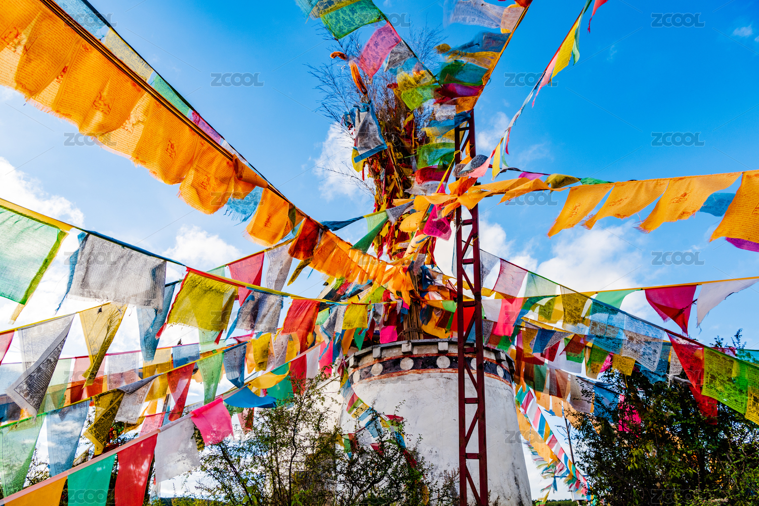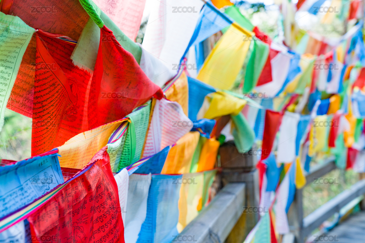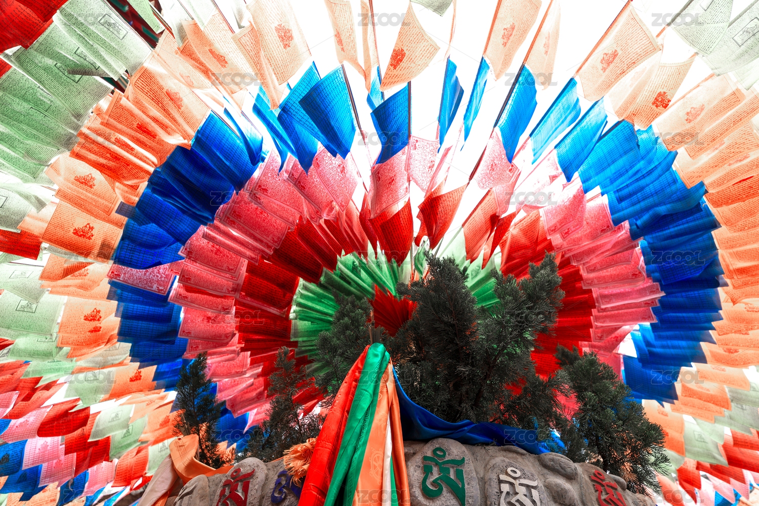 夏天青海省青海湖二郞剑风景区里的藏族经幡