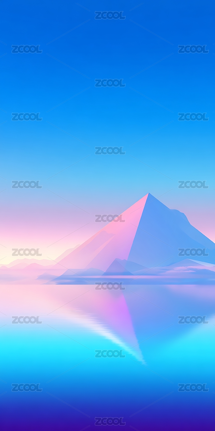 粉蓝山水倒影