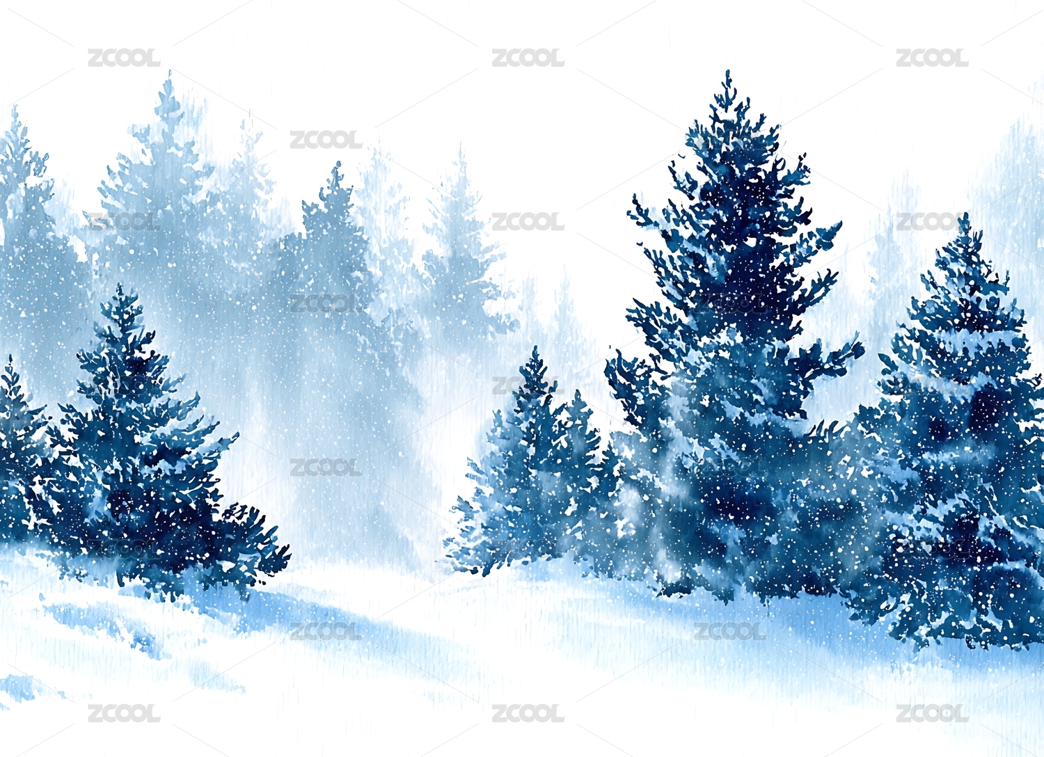 冬天户外冷杉雪景插画
