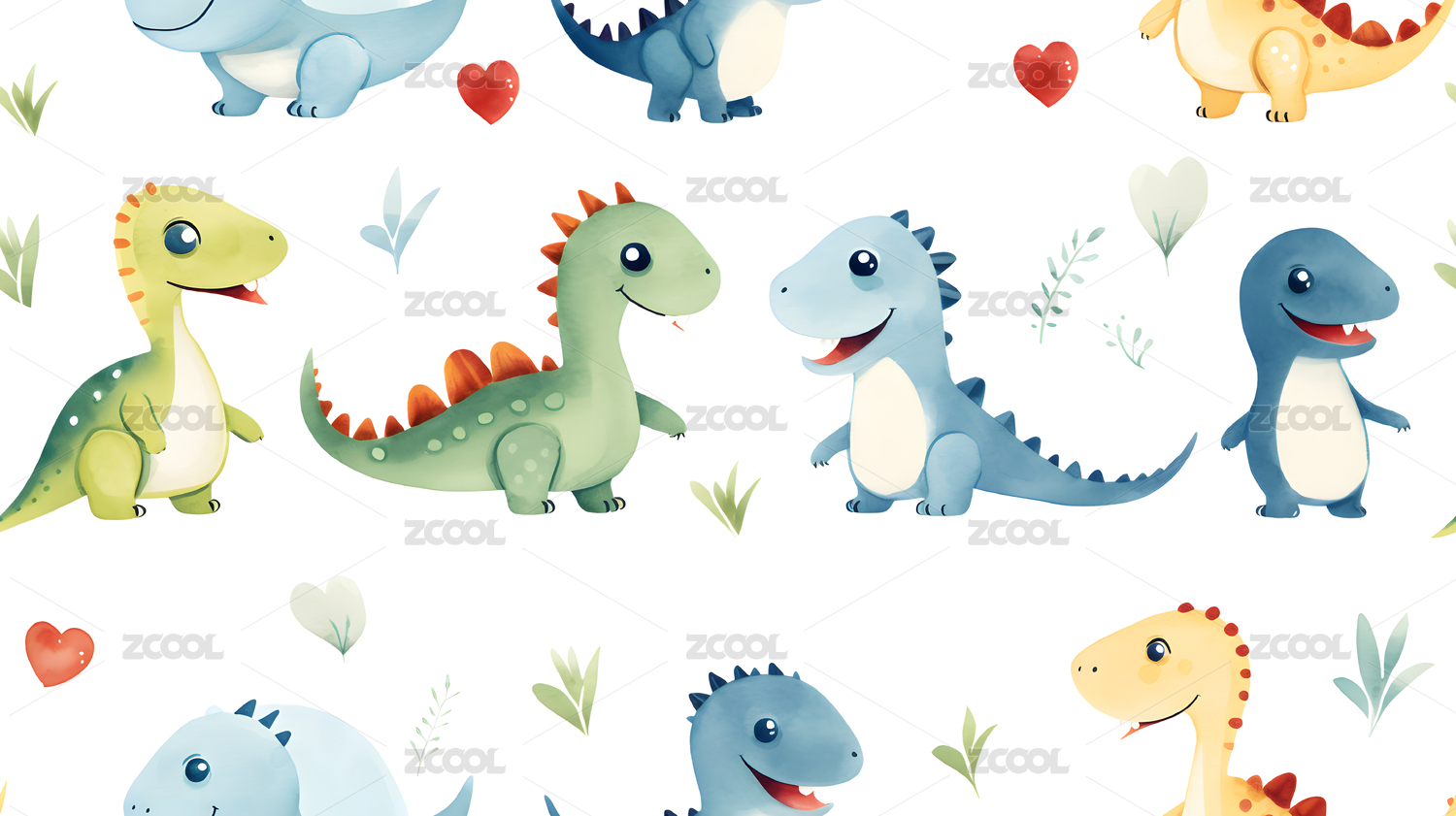 手绘卡通动物恐龙四方连续图案