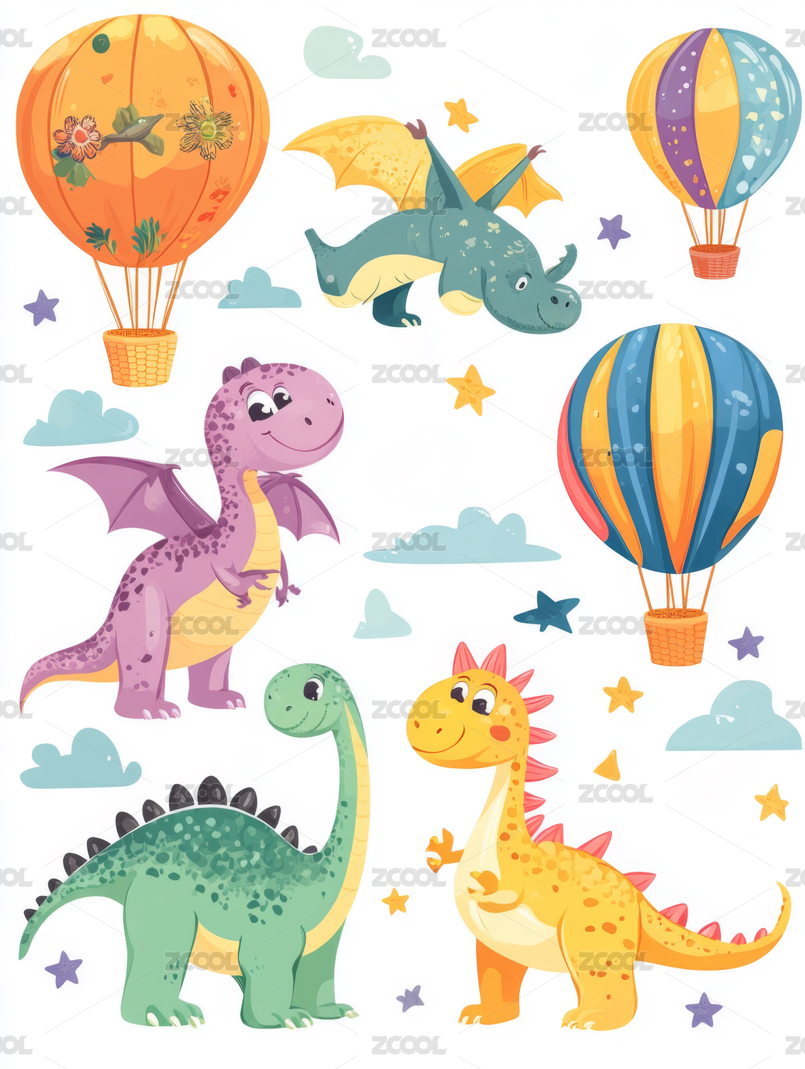数码水彩幼儿风格恐龙图案装饰抽象图形海报