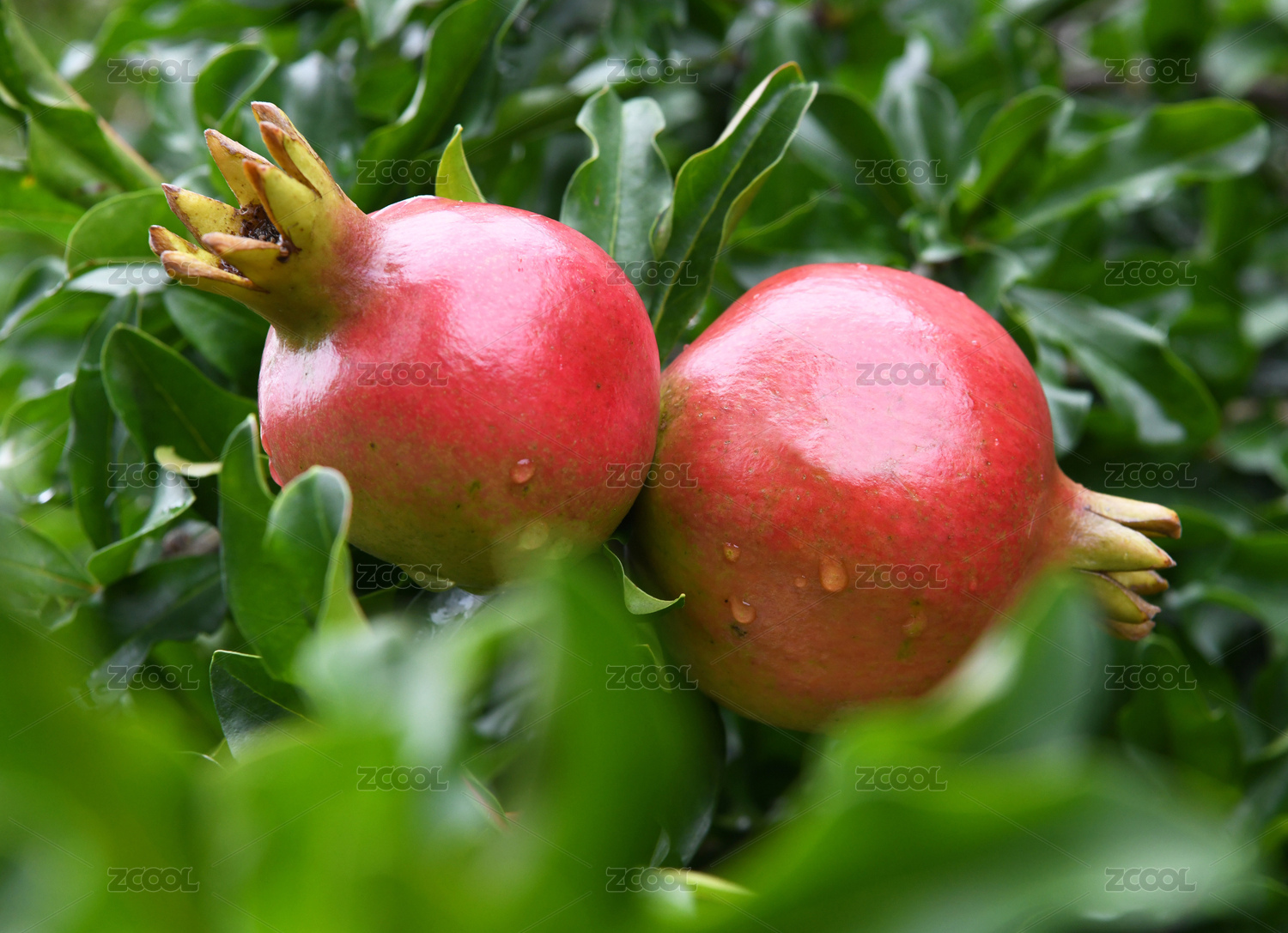 山东枣庄冠世榴园成熟的石榴果实上挂满雨