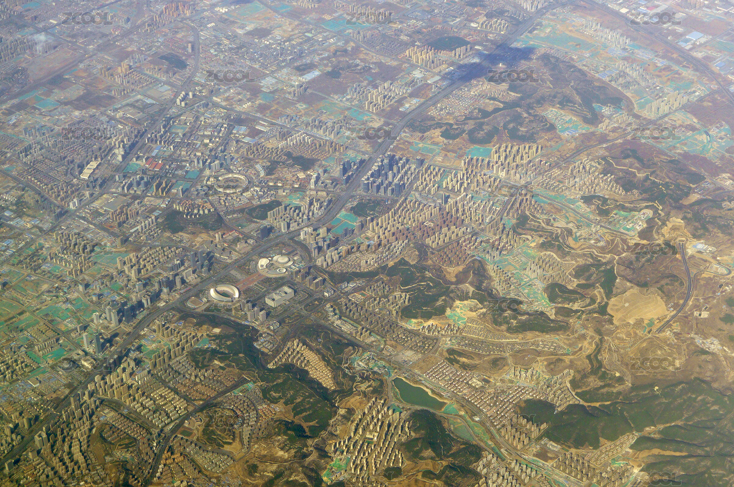 航拍山东省泰安市宁阳县直界水库和玉女湖地区