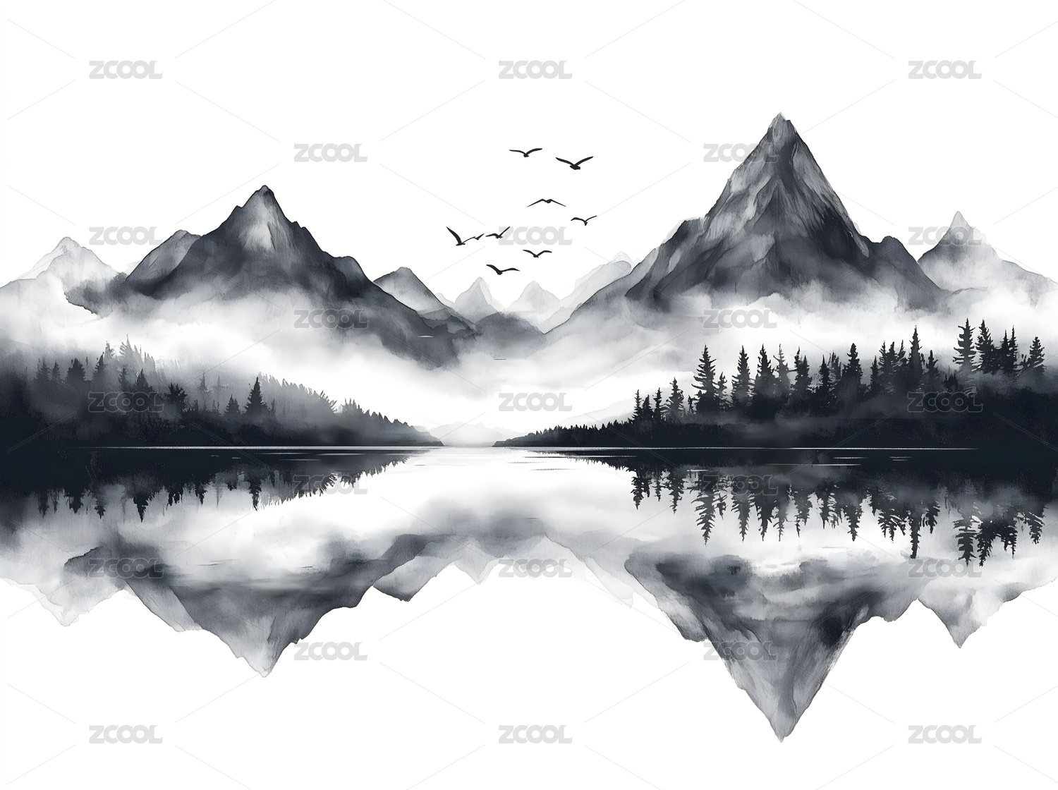 风景,自然,户外,水墨画,背景,中国画,天空,地形,插画