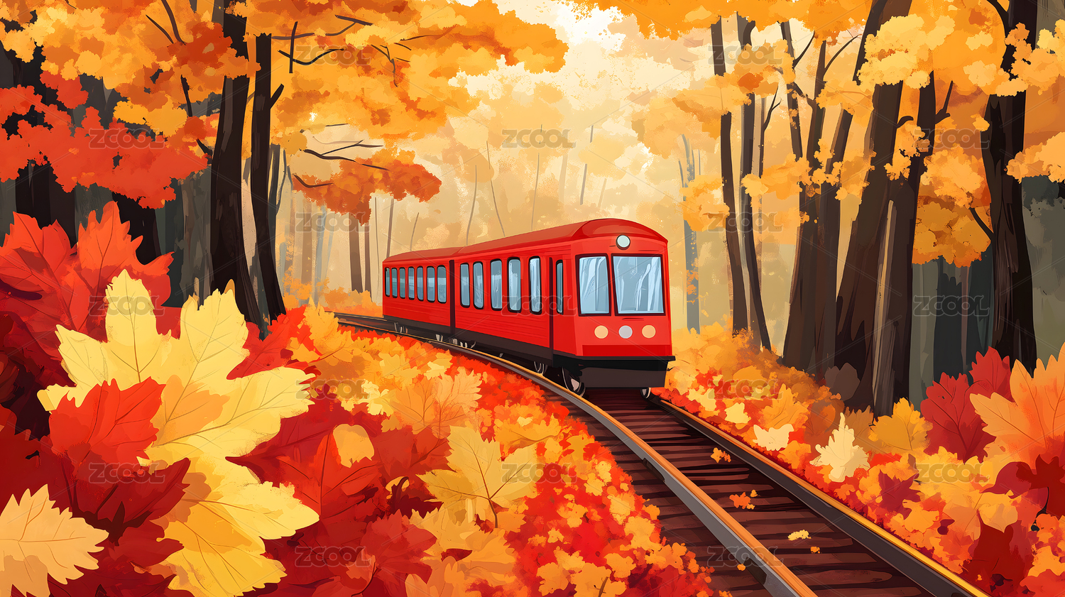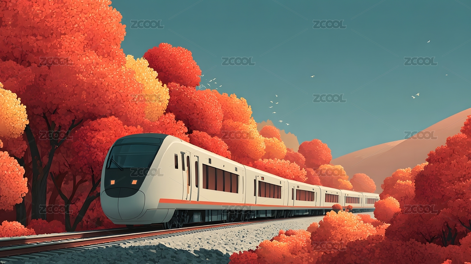 极简主义,秋天,火车,站台,红色,白色,景观,图形,风景,场景