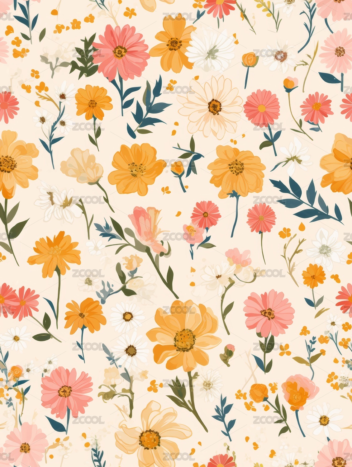 数码复古彩色梦幻花朵装饰抽象海报背景