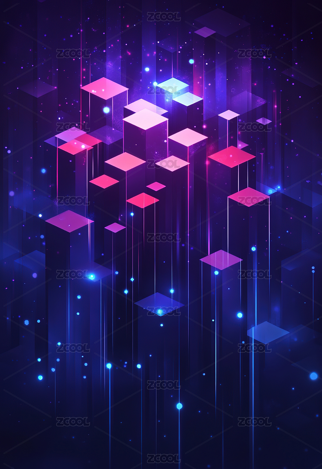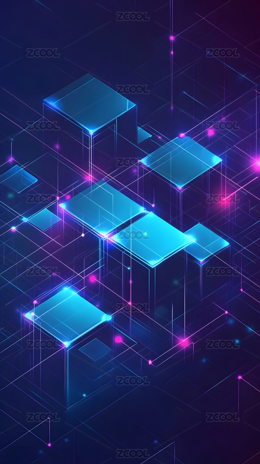 数码,科技,数据,未来主义,发光,明亮,正方形,紫色,蓝色,线条