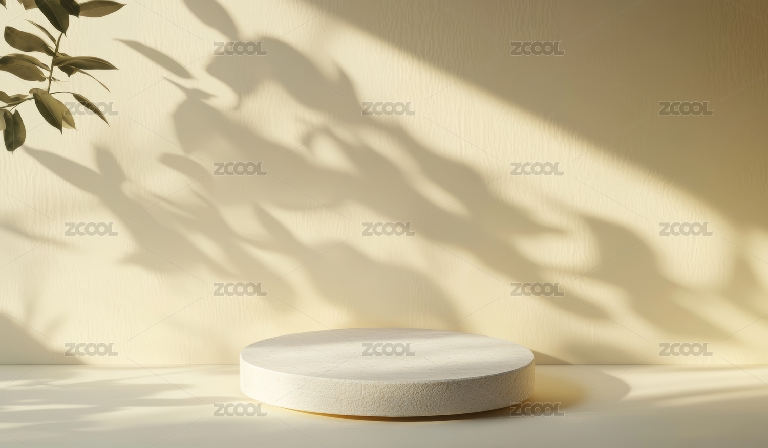 极简主义白色房间中的圆柱形讲台