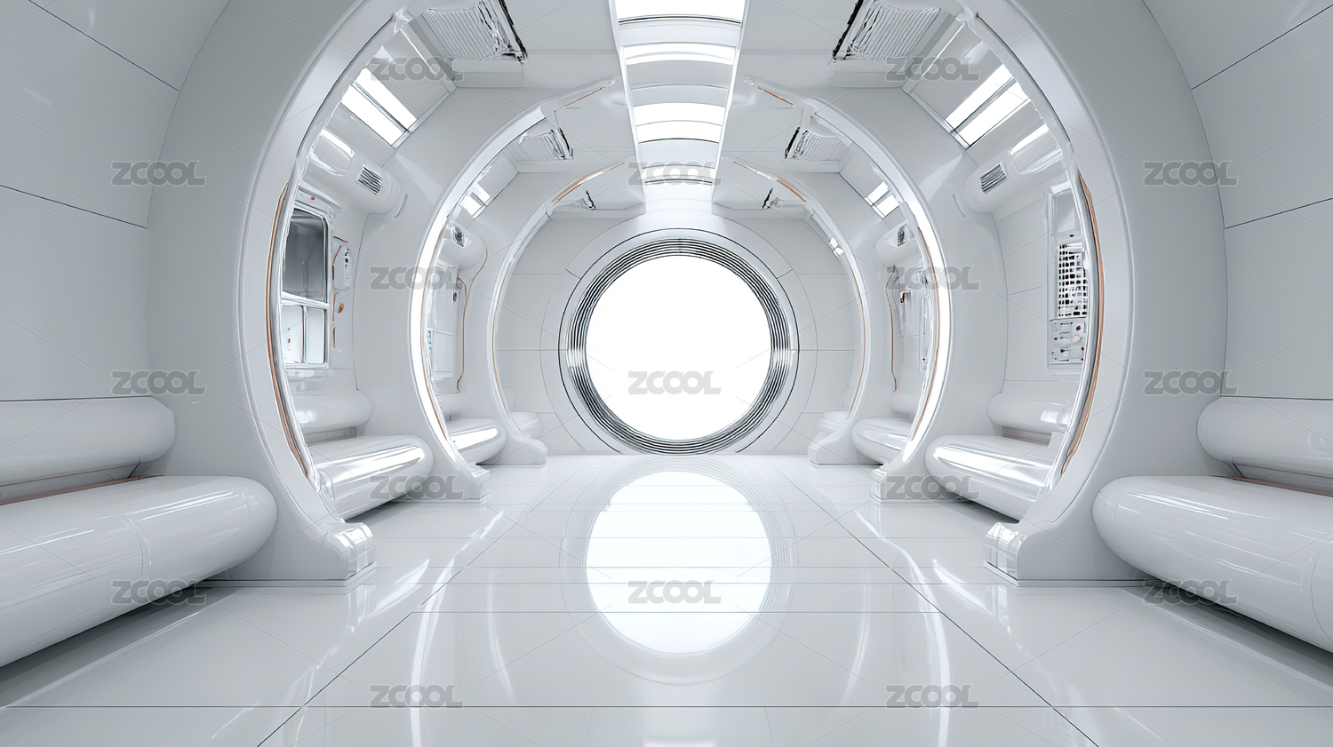 3D渲染科幻延伸空间站飞船走廊隧道背景