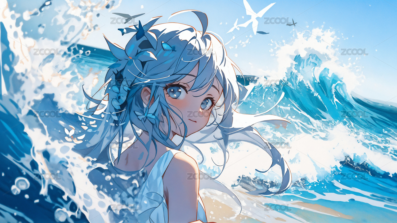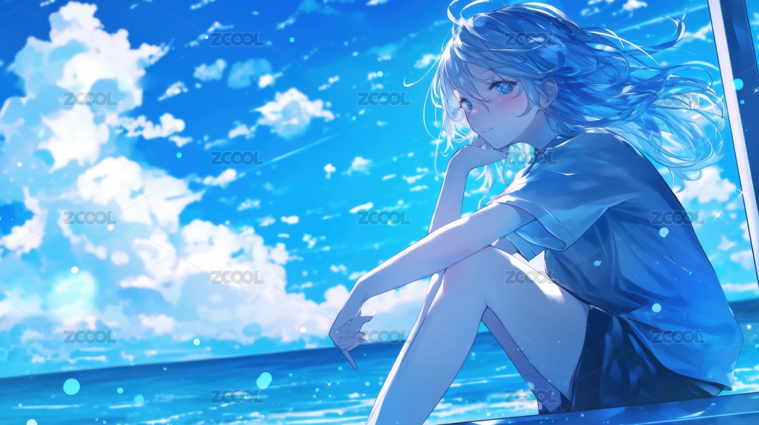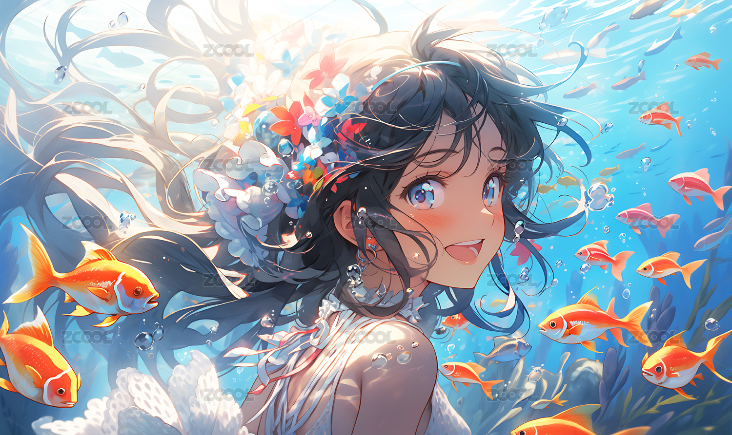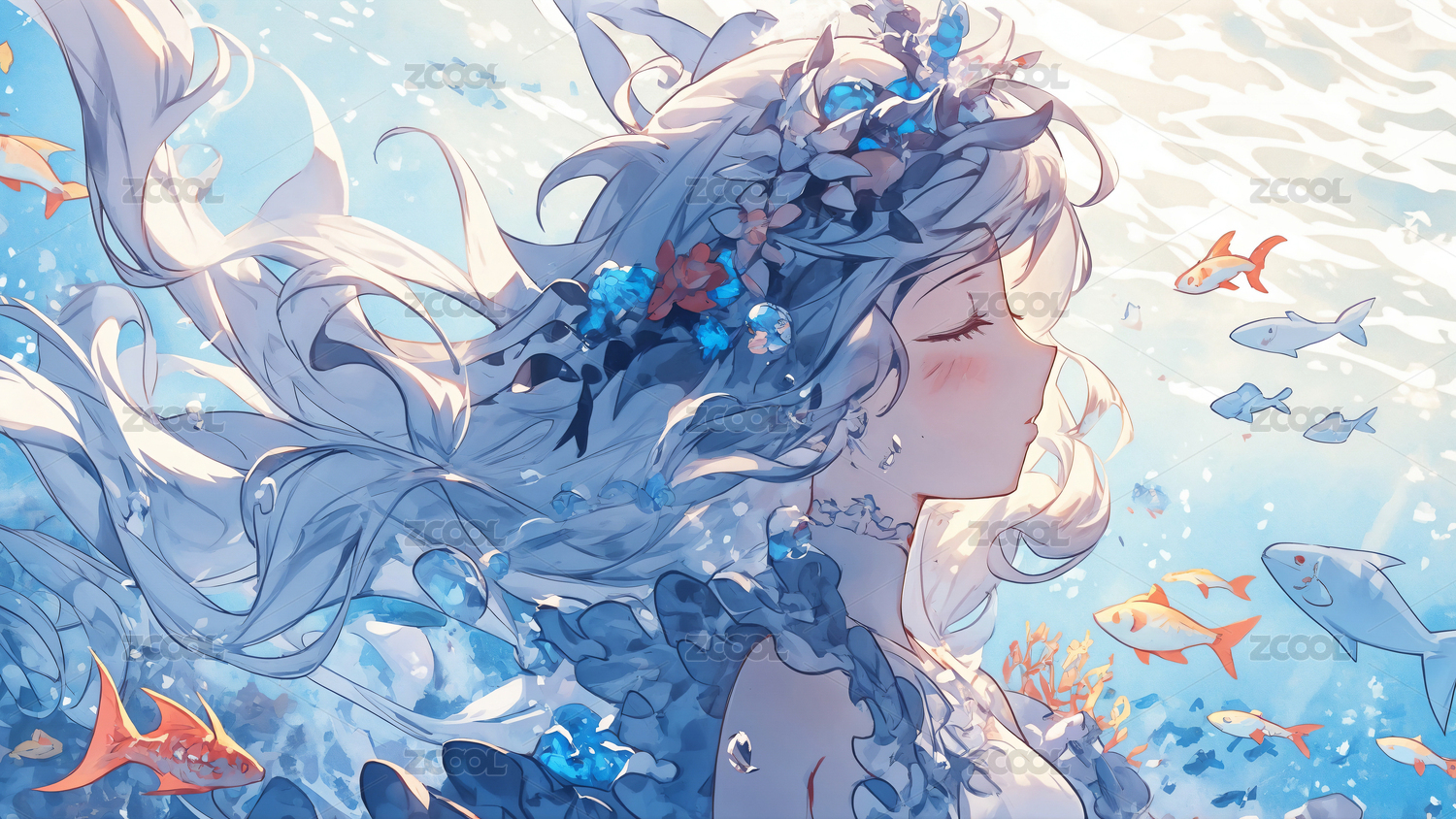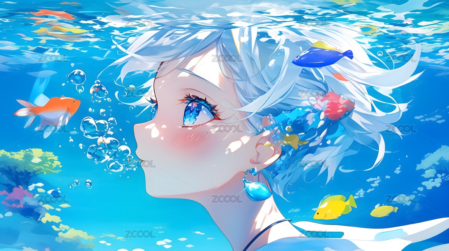 女性,人像,女孩,清新,二次元,天空,云朵,海洋,鱼群