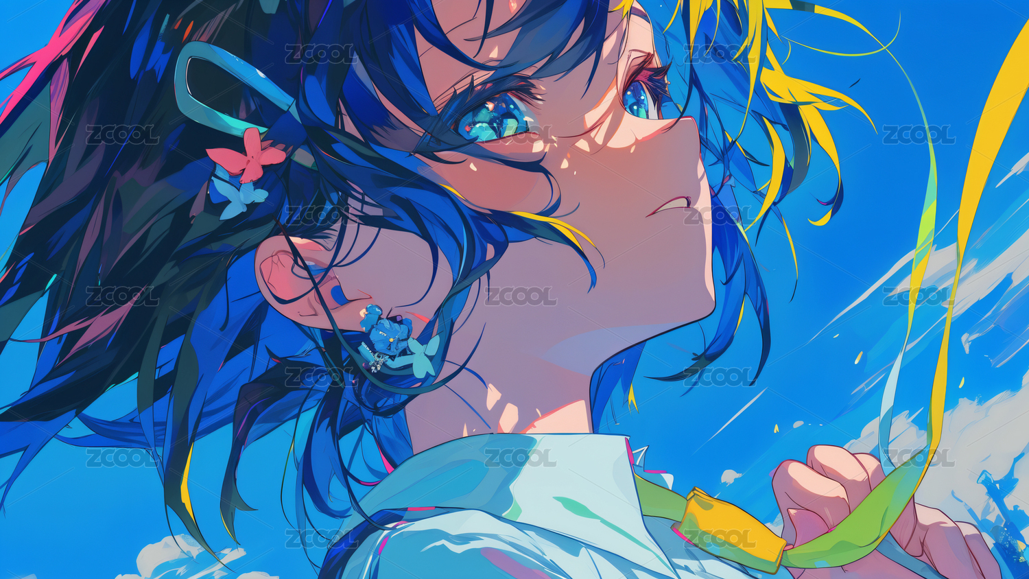 动漫人物蓝色头发梦幻画面