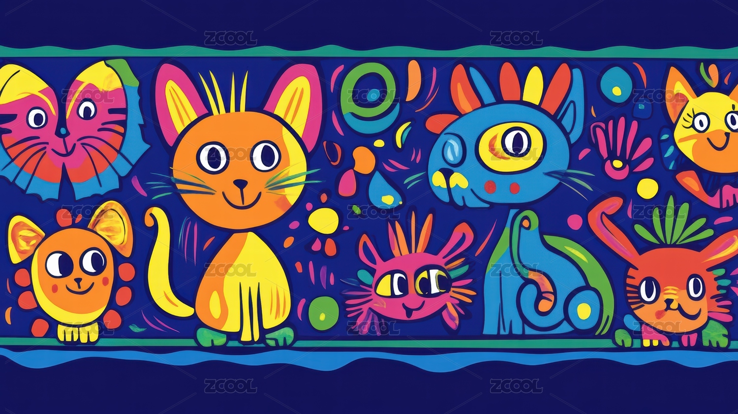 多彩猫咪图案