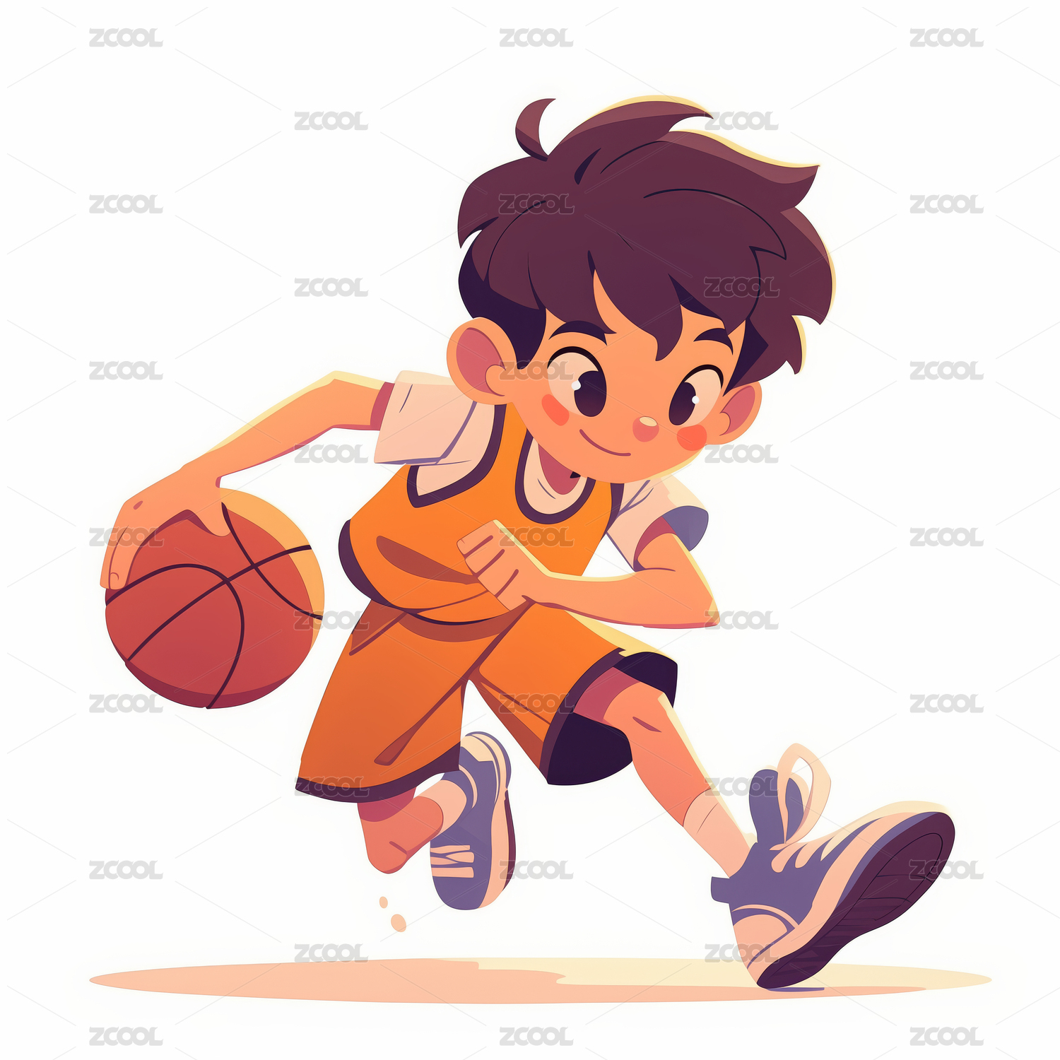 卡通打篮球的男孩插画
