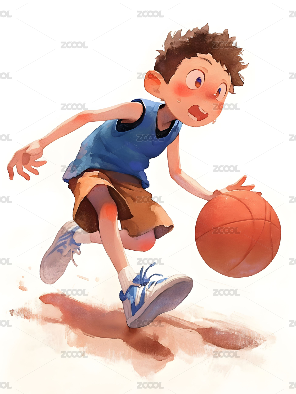 男孩打篮球水彩插画