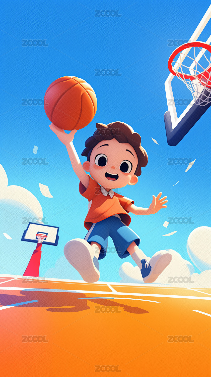 3d卡通可爱男孩打篮球