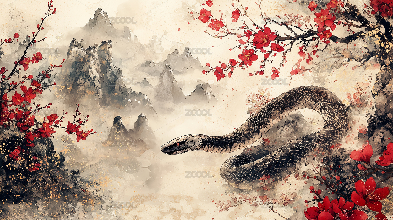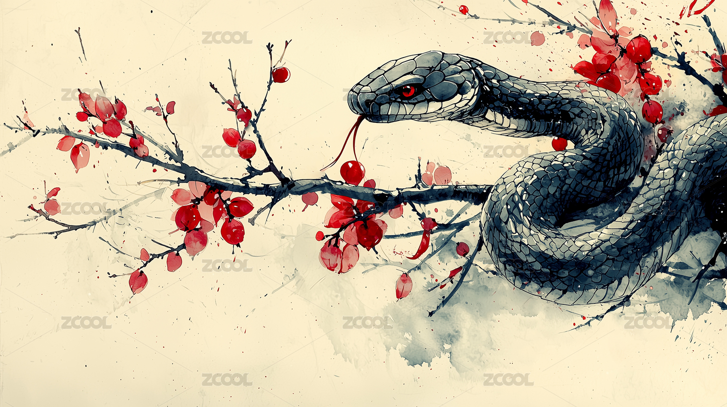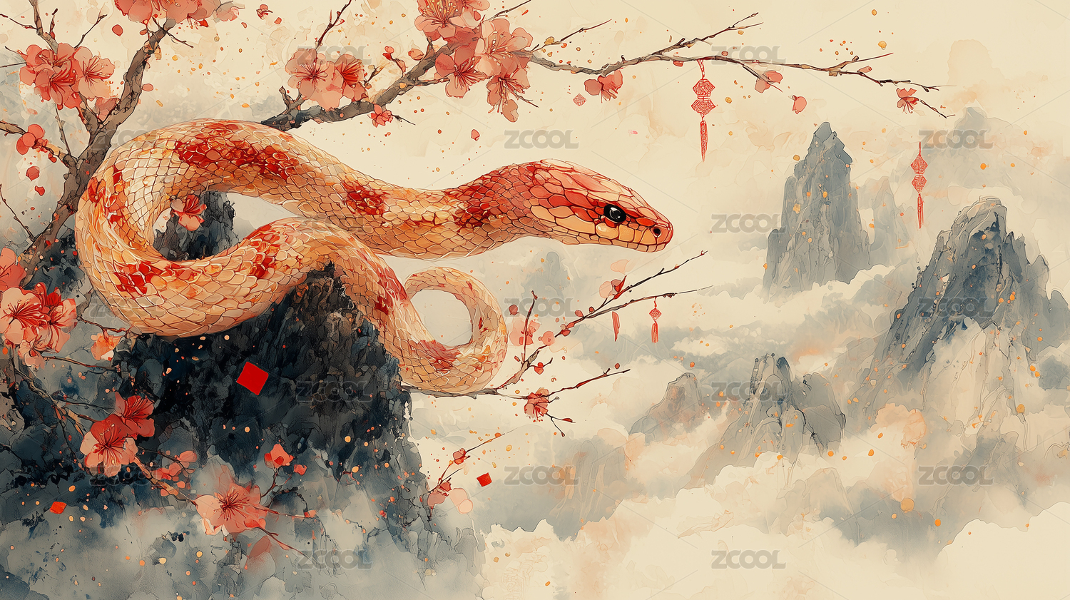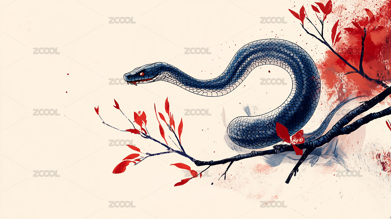 DXCZ202403,蛇,蛇年,新年,生肖,动物,节日,十二生肖,插画