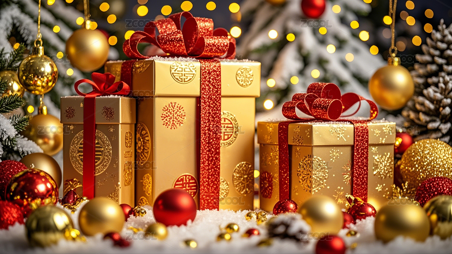 圣诞节,圣诞,圣诞树,彩灯,礼物盒,冬青叶,红果,雪花,节日,温馨