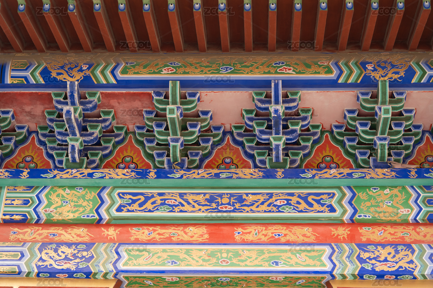 中国传统古建筑和玺彩画彩绘纹理图案特写