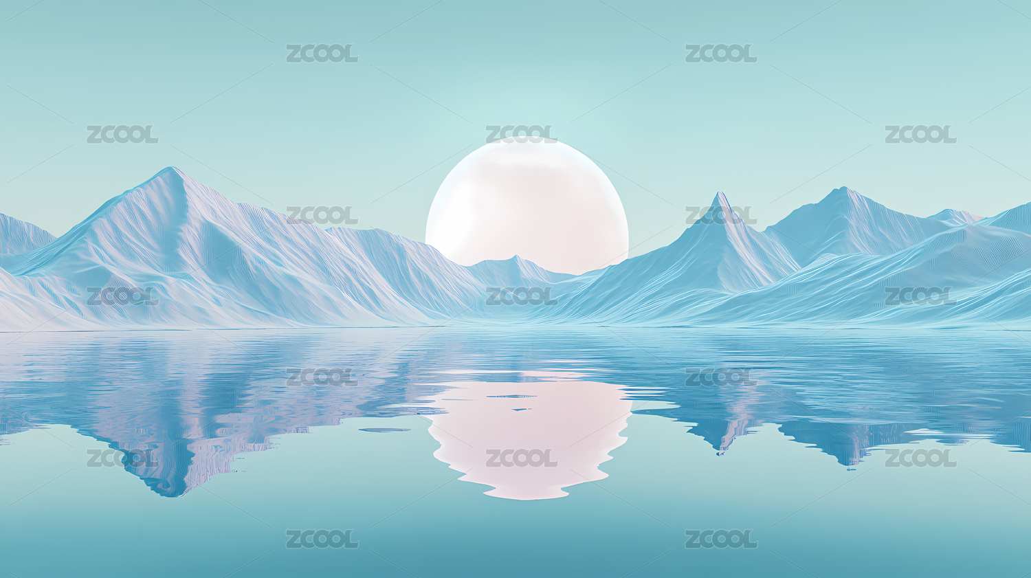 简约,插画,三维,山,月亮,中秋节,元宵,团圆,倒影,水面