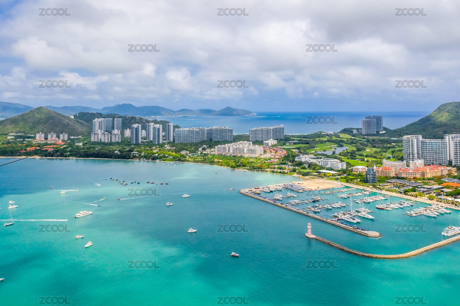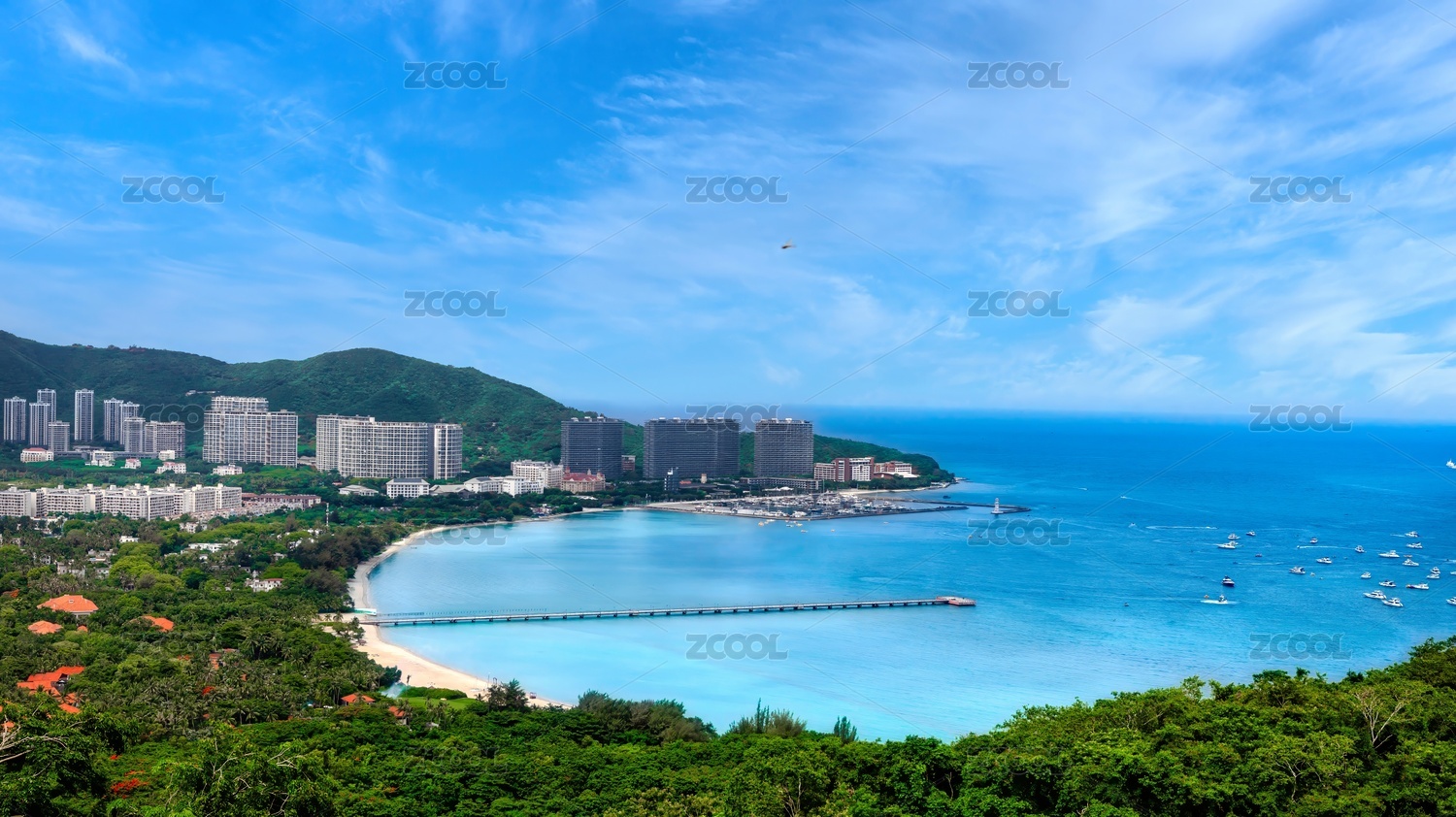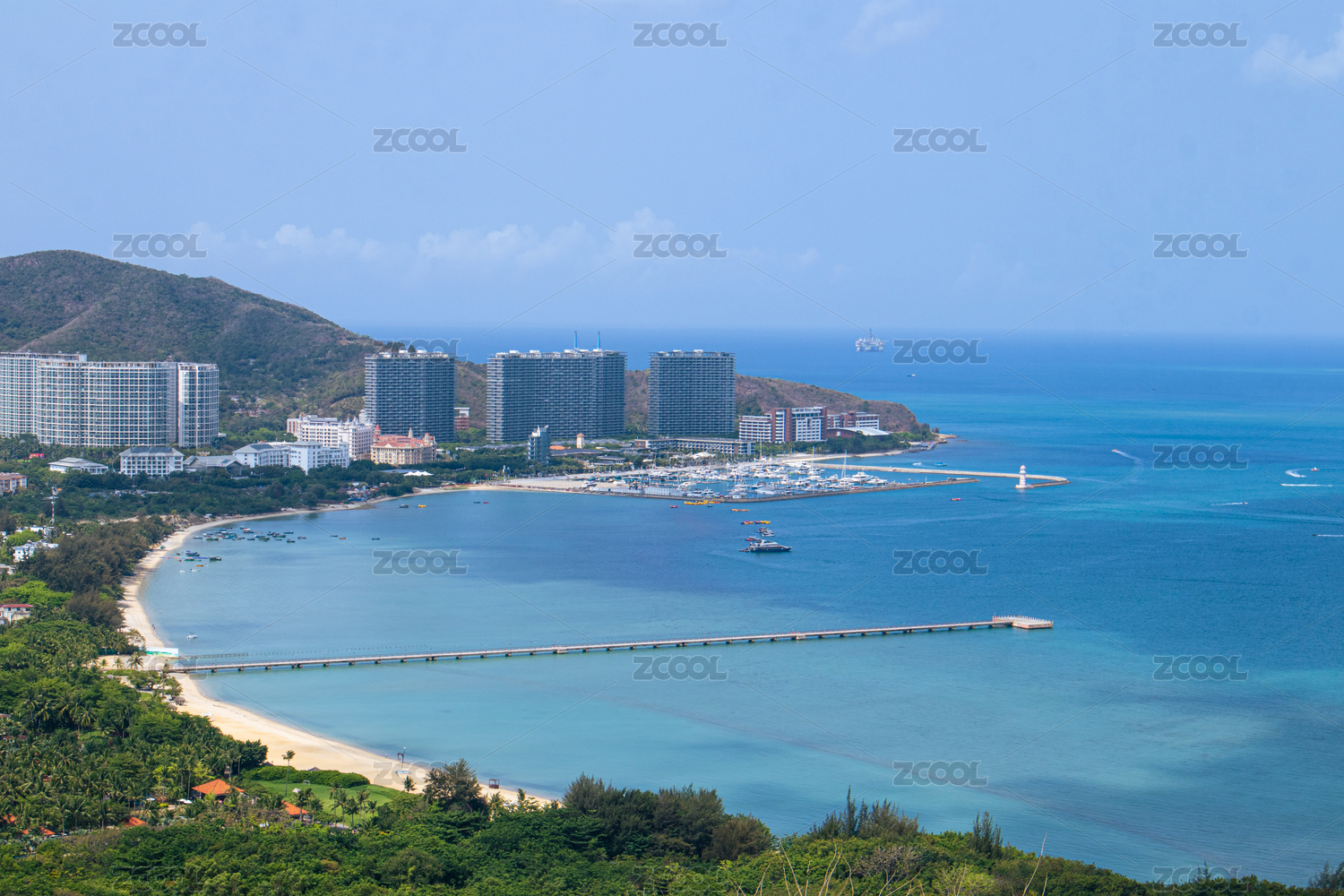 海南著名景点鹿回头风景区俯瞰海岸城市