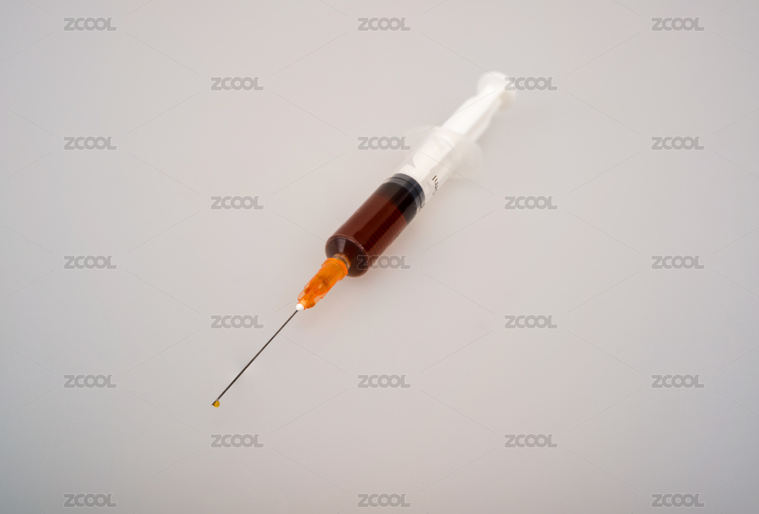 一支医疗注射器插在新型冠状病毒疫苗瓶里