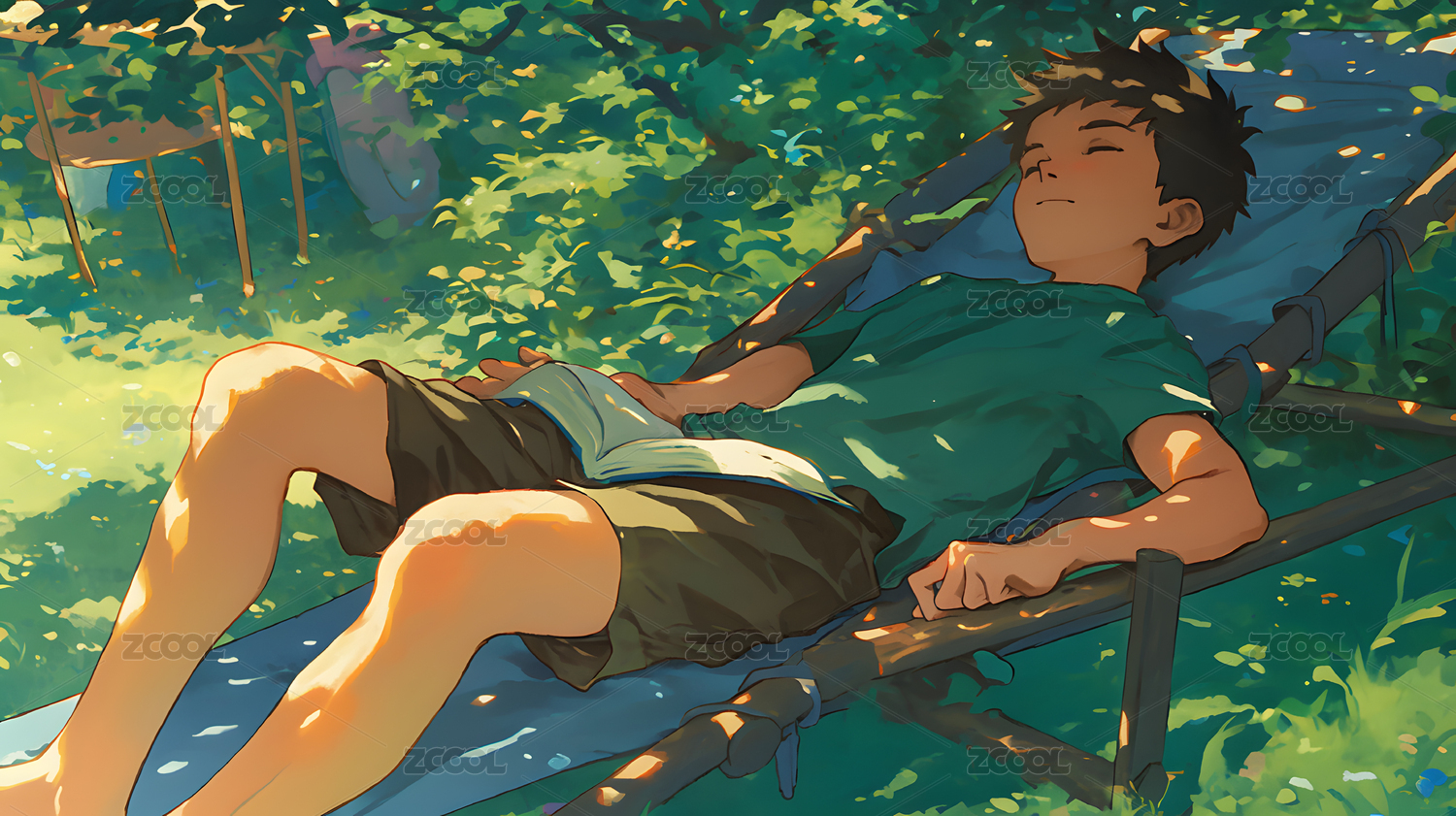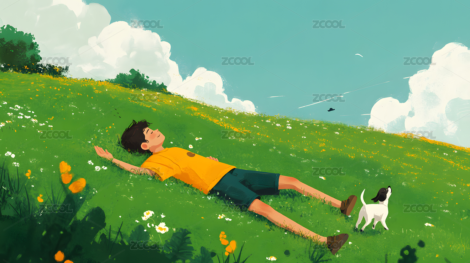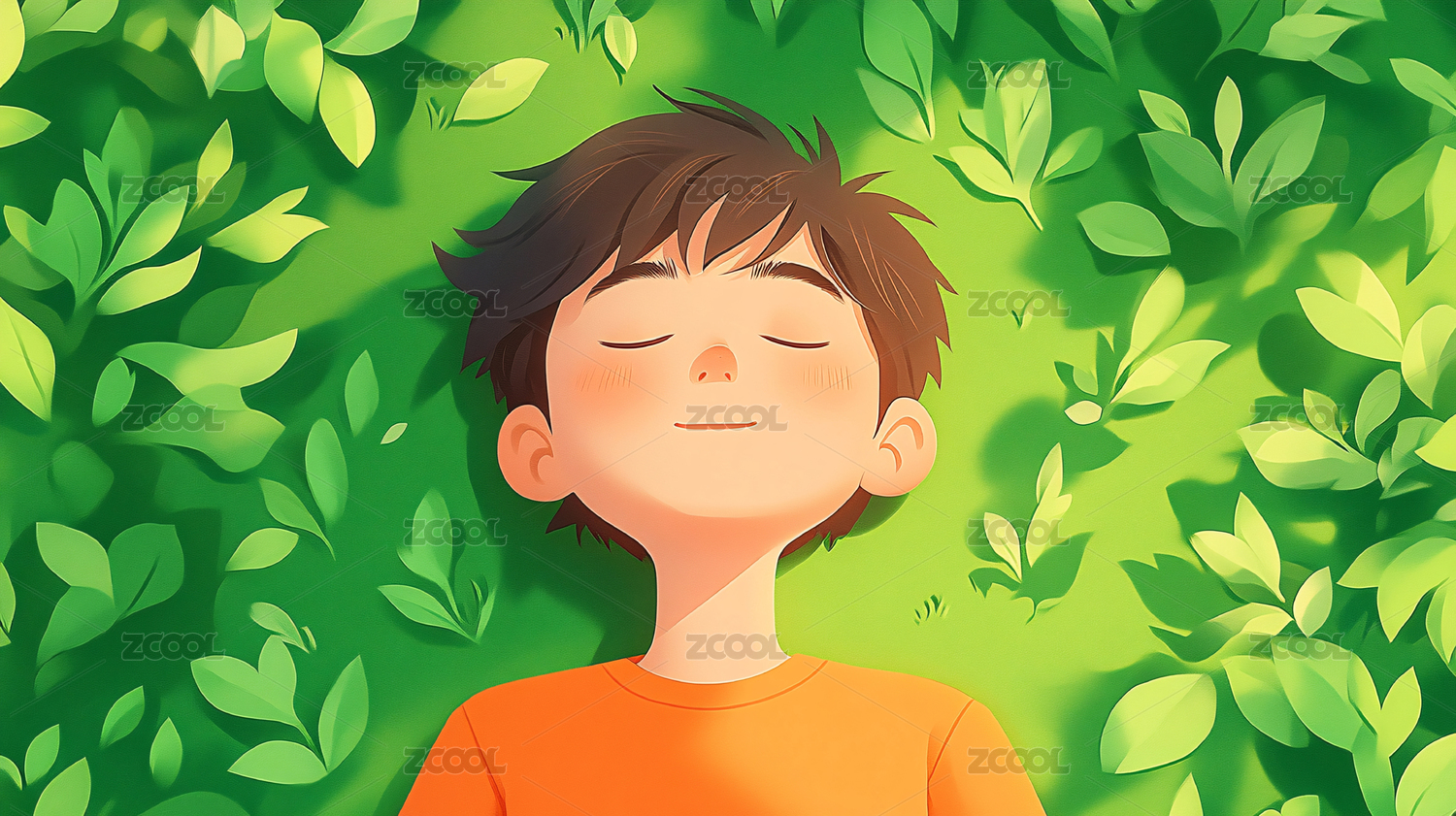 六一儿童节孩子户外游乐园睡觉童年成长插画