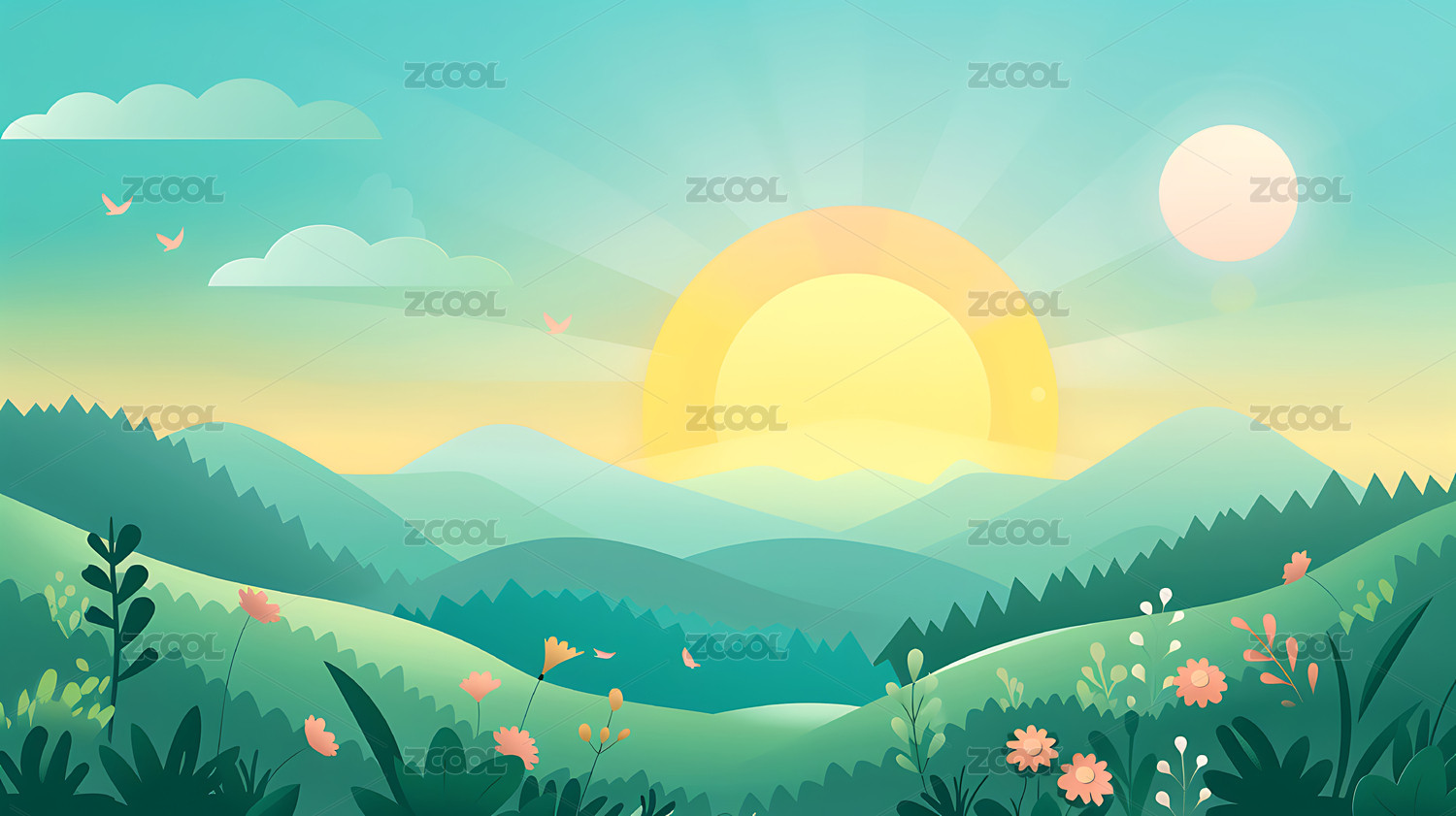 卡通风格唯美日出场景
