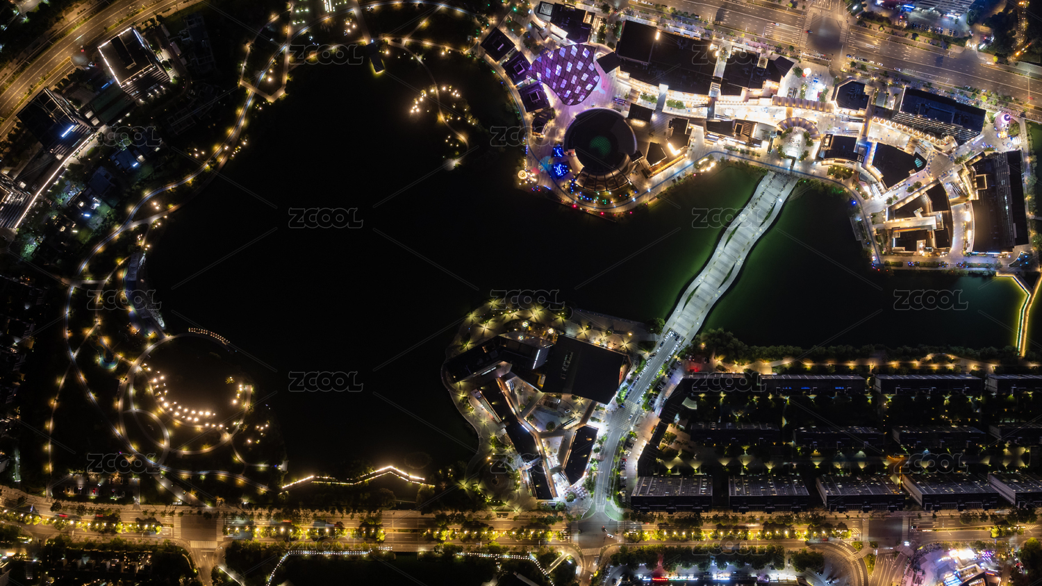 航拍中国广东佛山千灯湖公园夜景灯光秀
