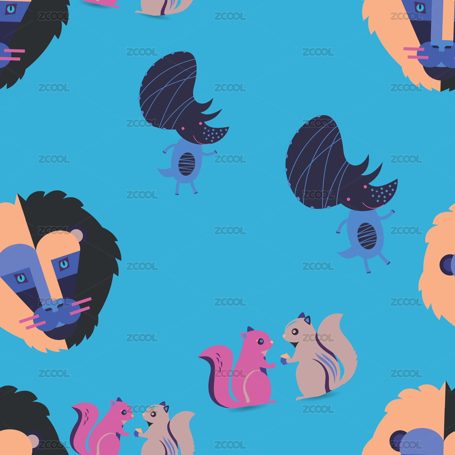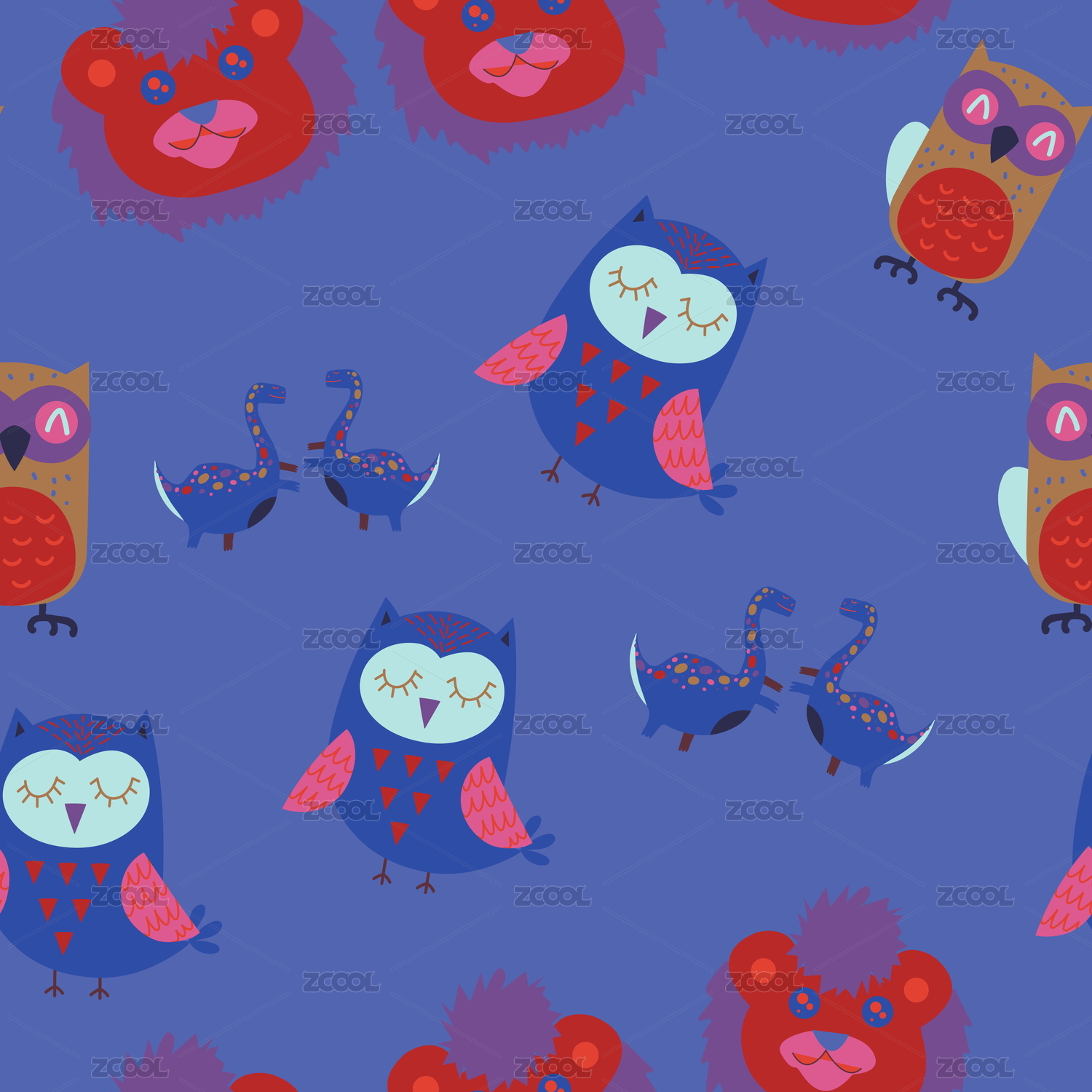卡通动物无缝插画
