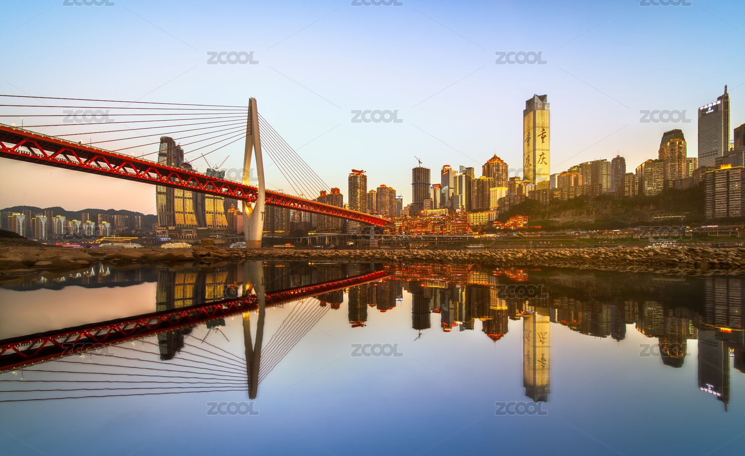解放碑洪崖洞千厮门大桥嘉陵江倒影