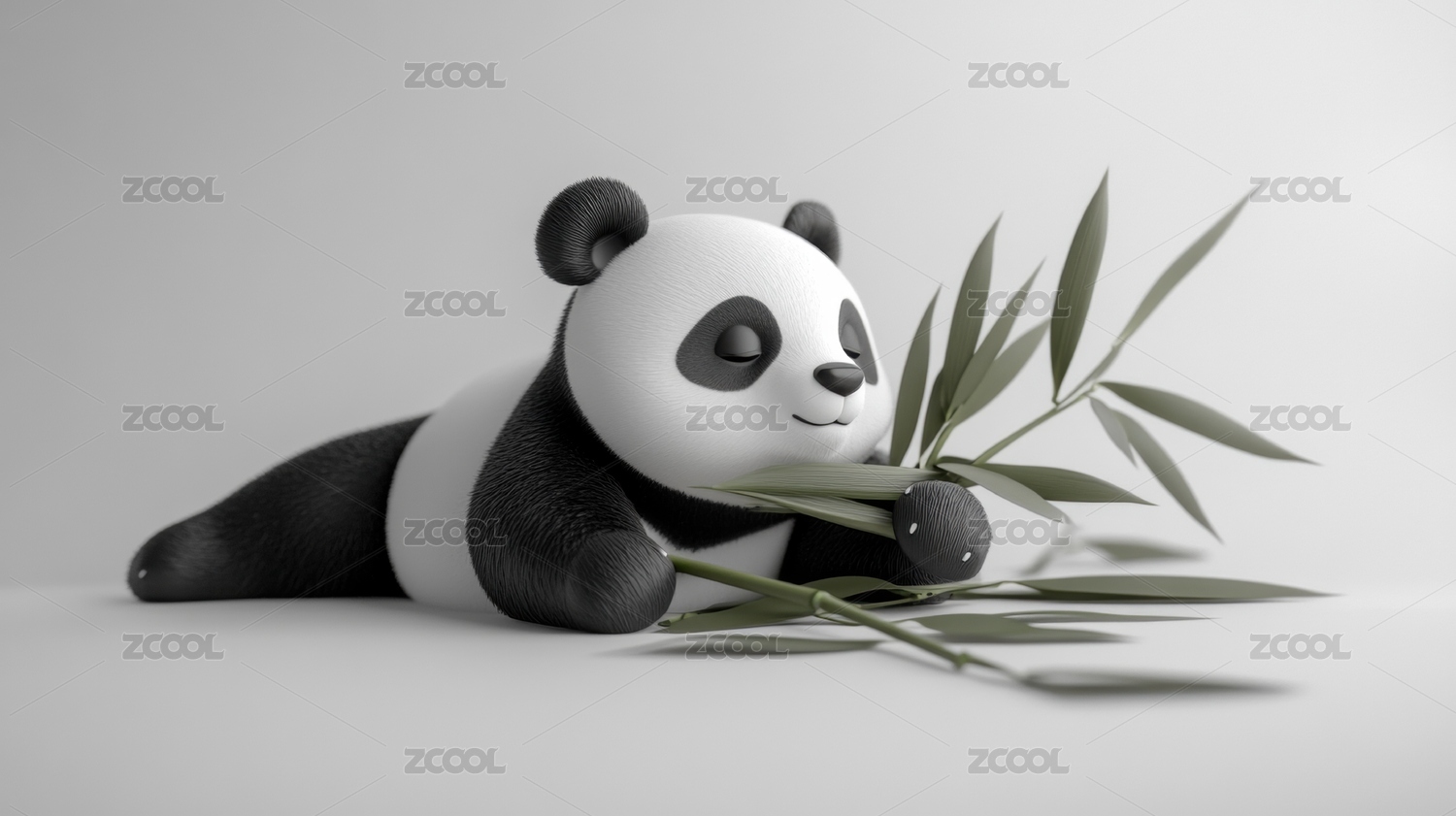 一只躺地上抱着竹子睡觉的熊猫3D立体插画