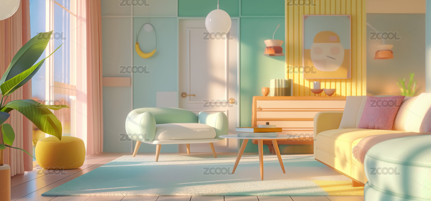 3d卡通风格的客厅环境
