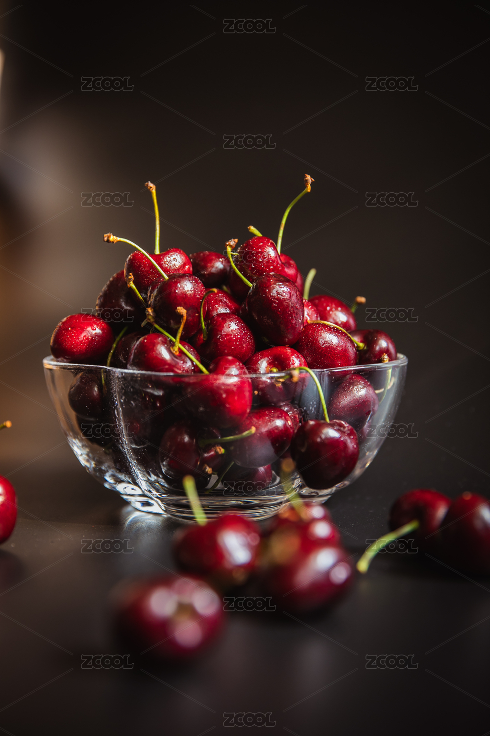 黑色背景暗调车厘子樱桃特写