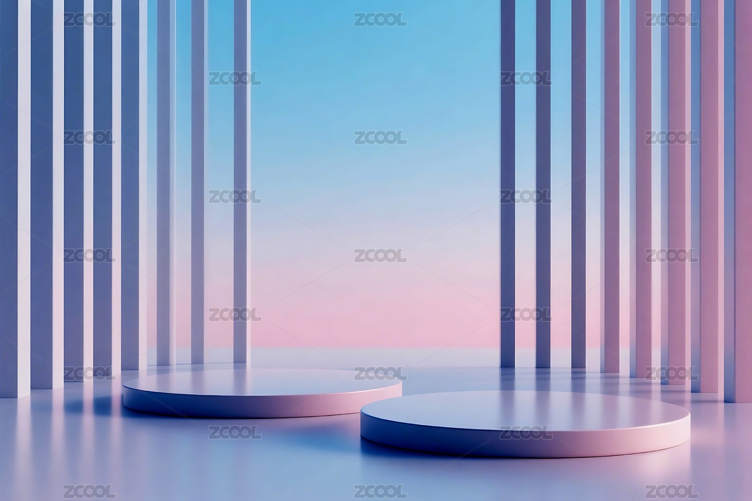 粉蓝背景下的白色圆台