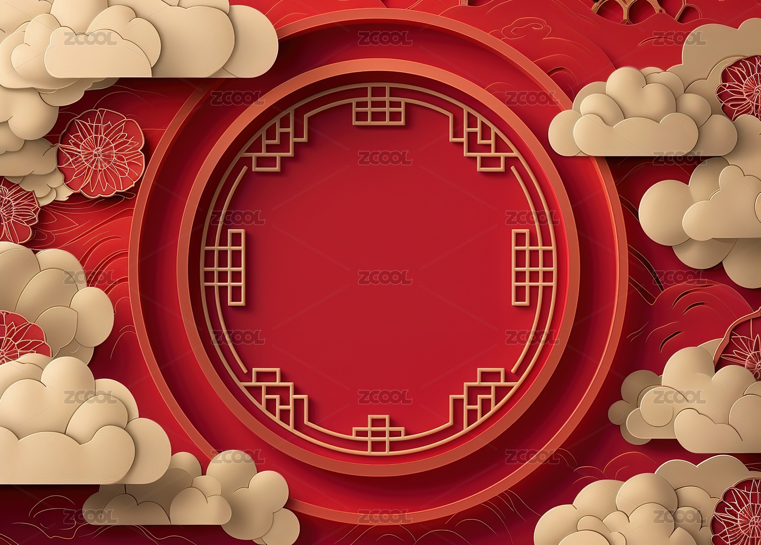 3D春节过年中式传统祥云背景