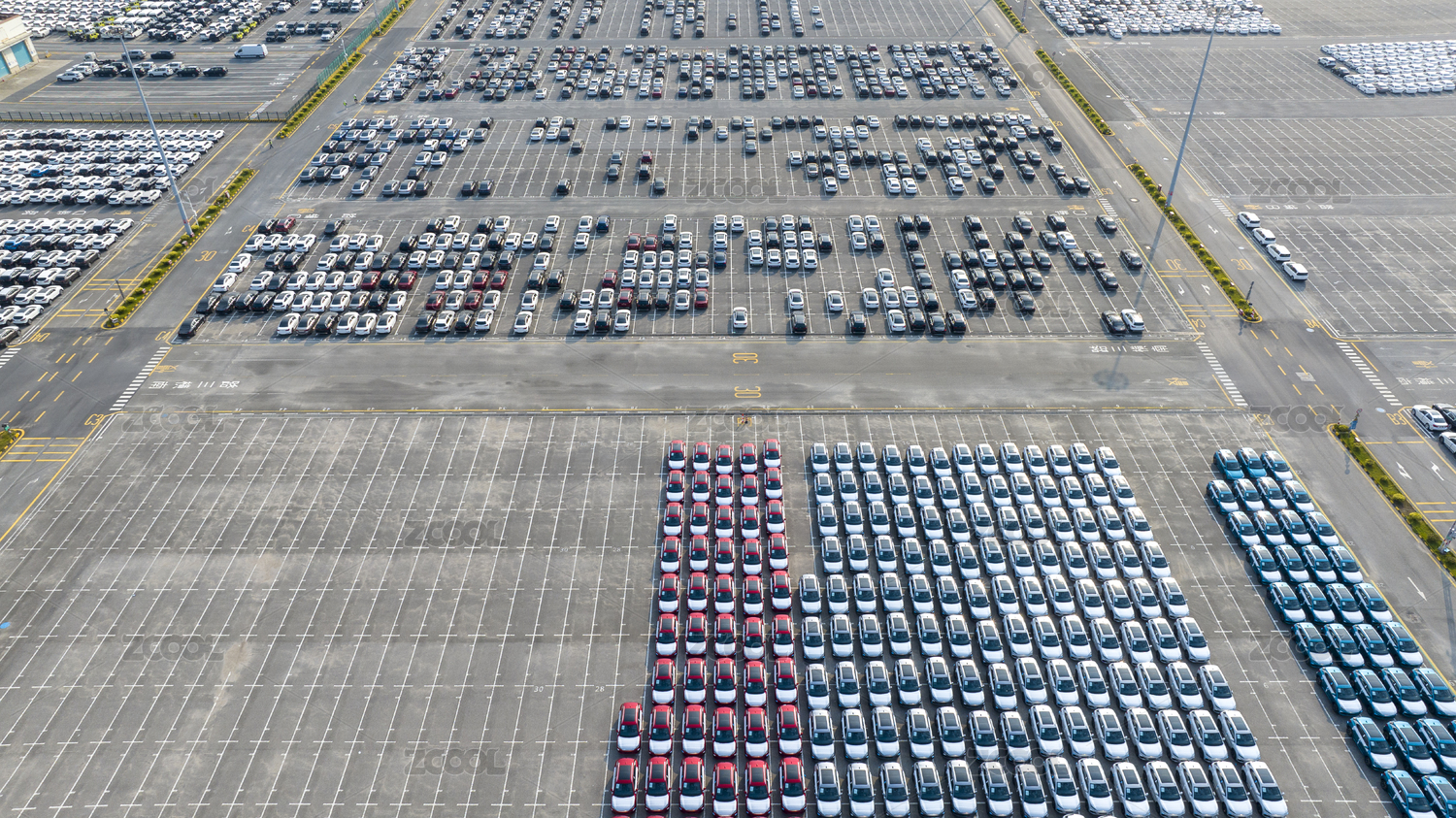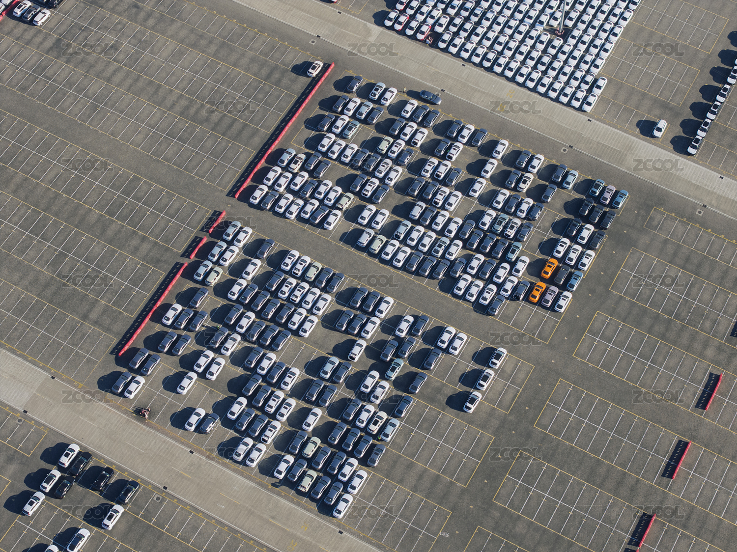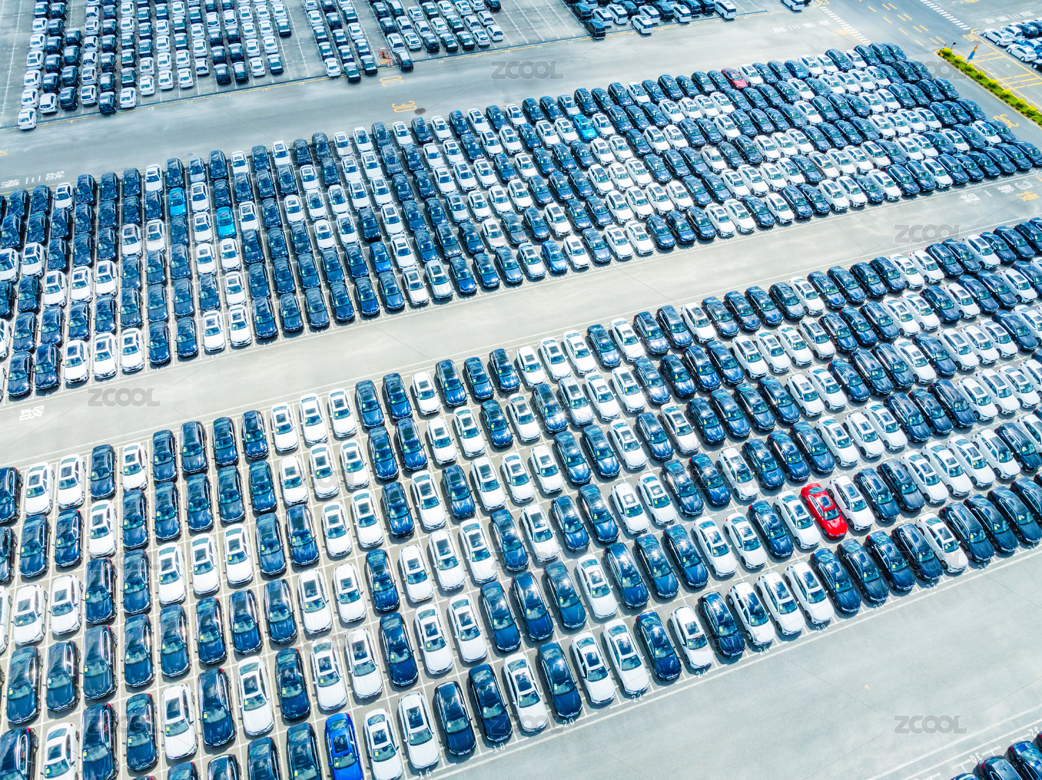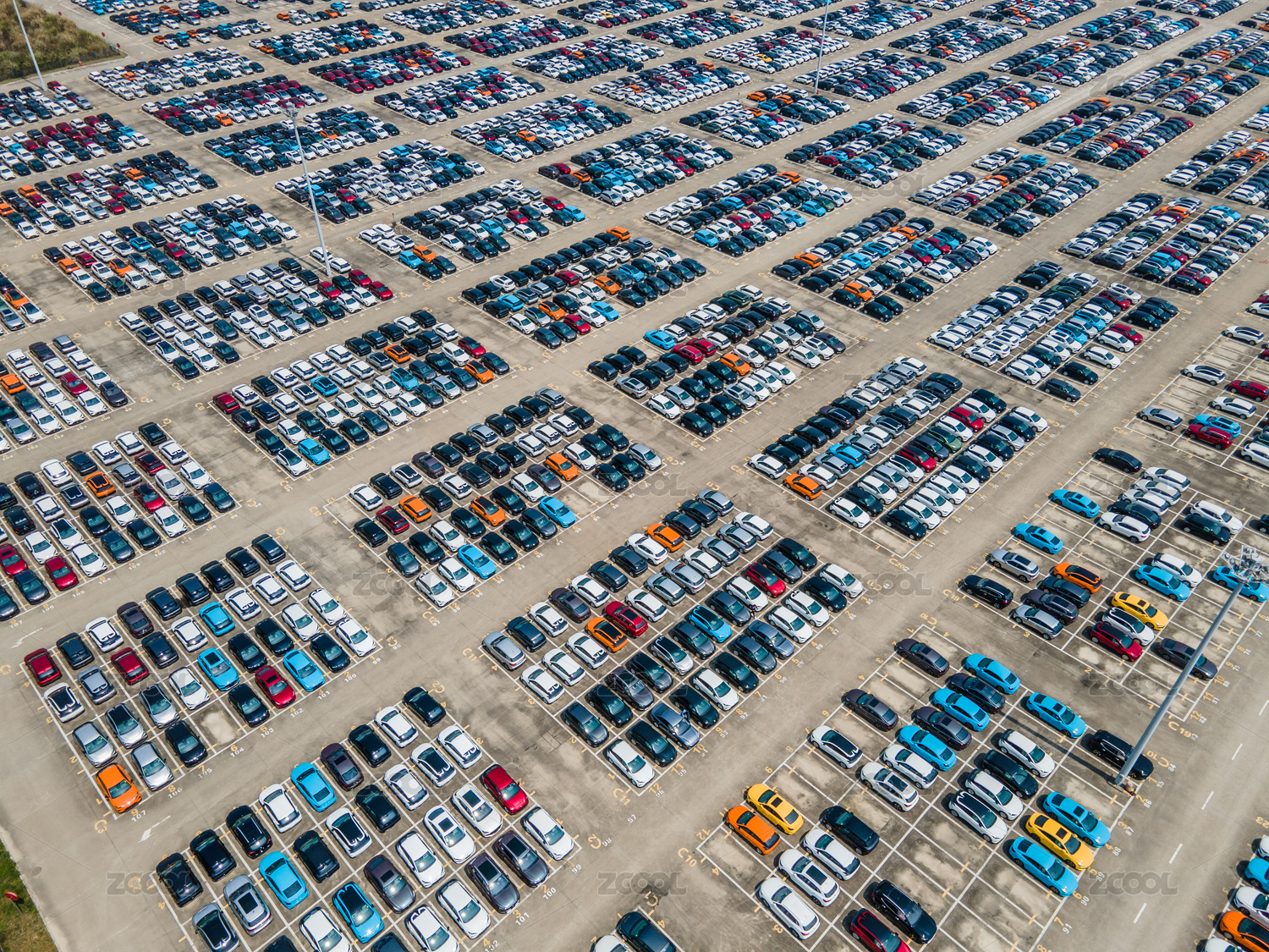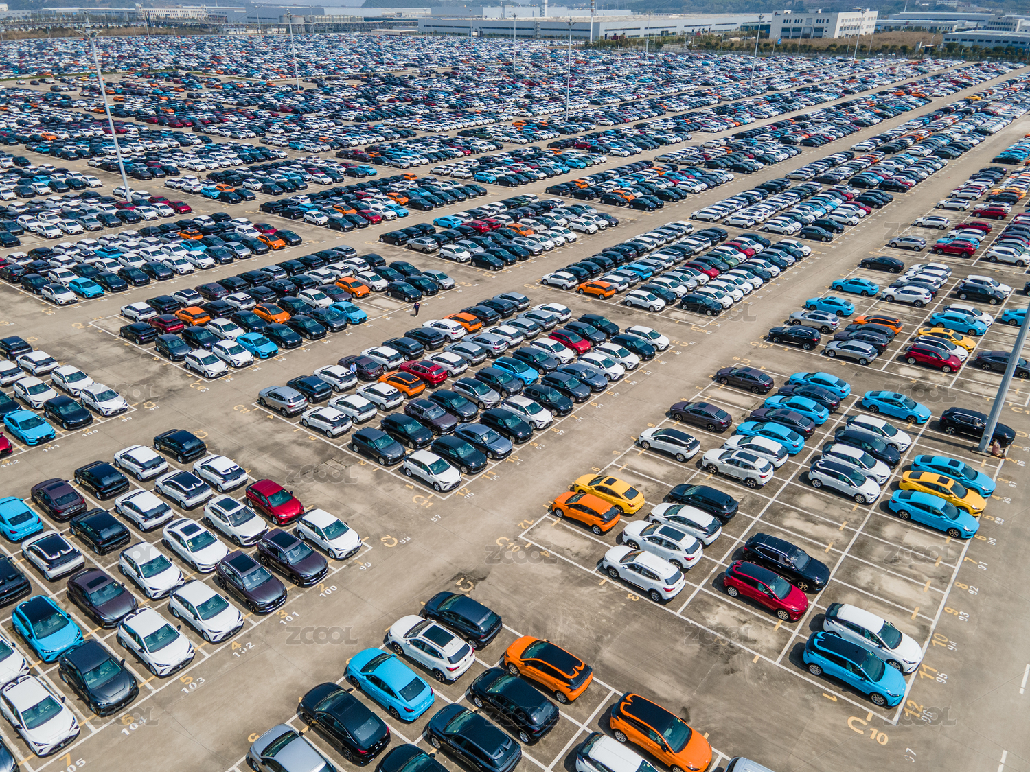 俯瞰四川成都汽车厂停车场里停放的密集汽车