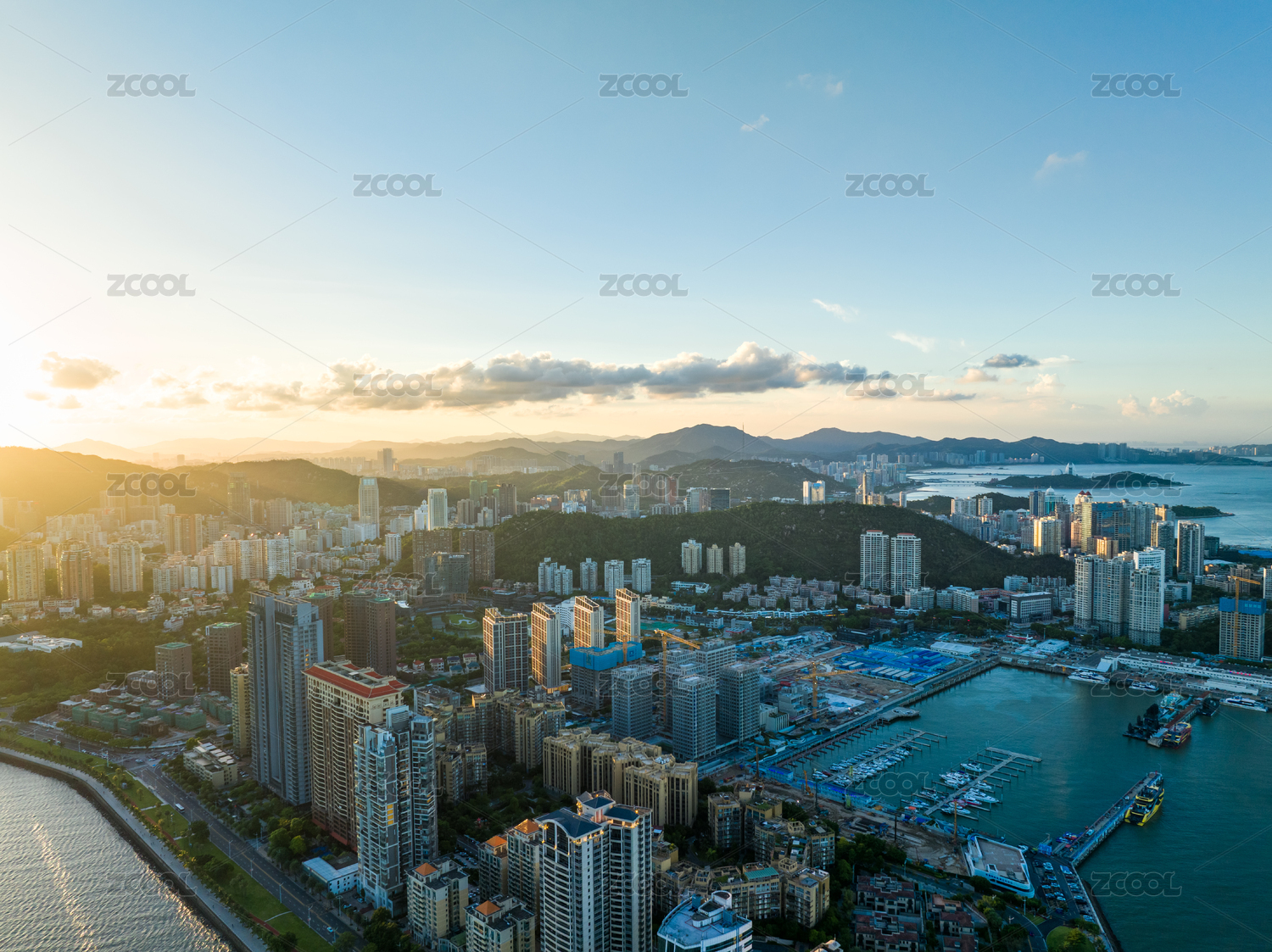 中国海南三亚凤凰岛城市天际线风光夜景航拍
