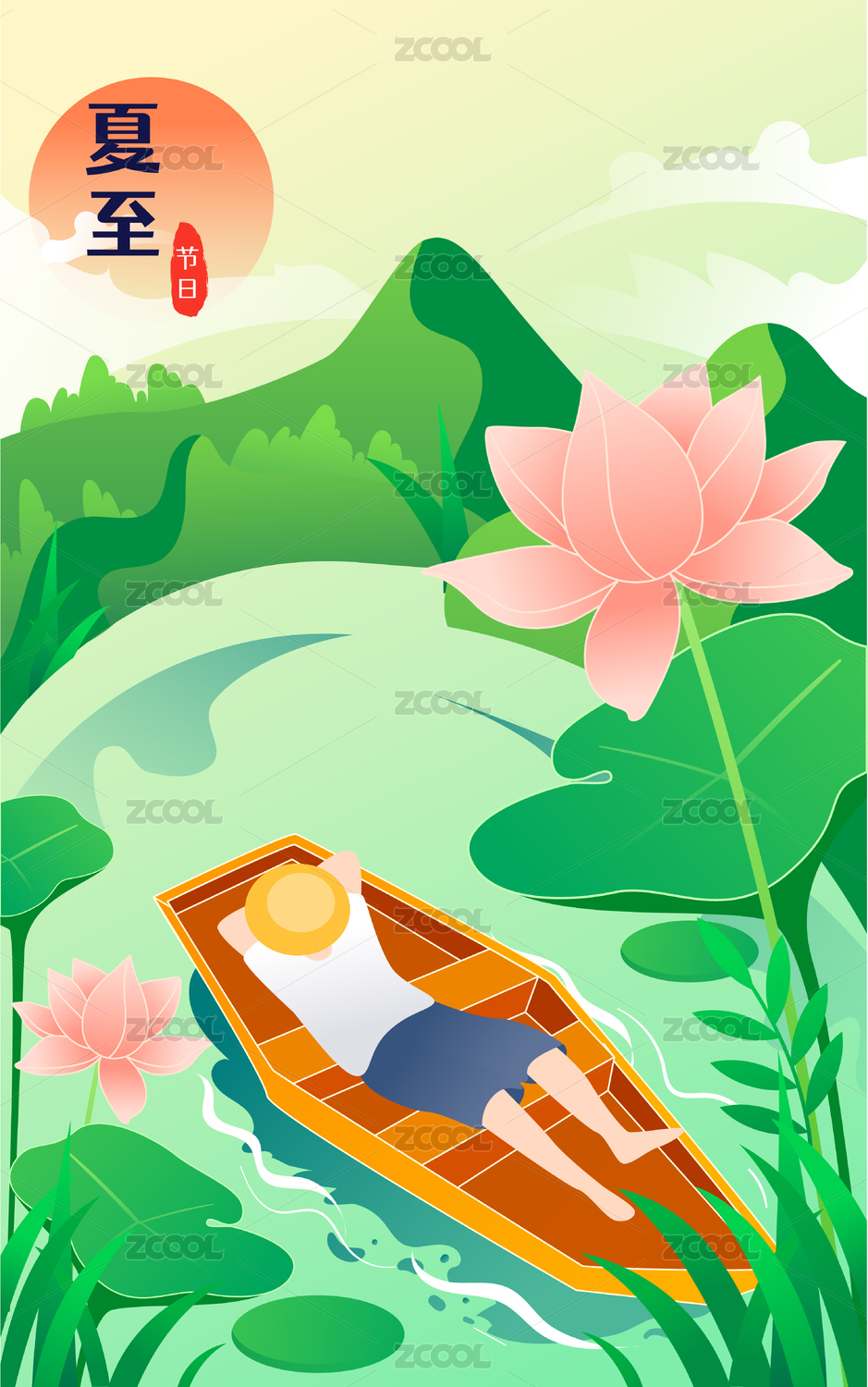 夏至节气矢量插画