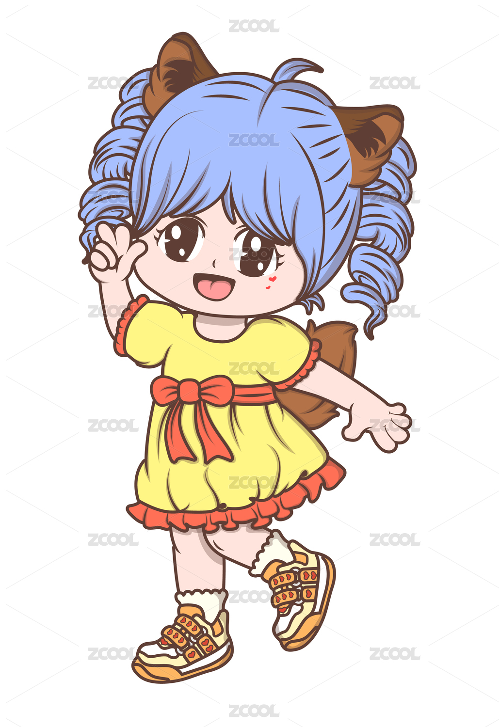 中餐食物拟人Q版可爱小女孩 手绘插画