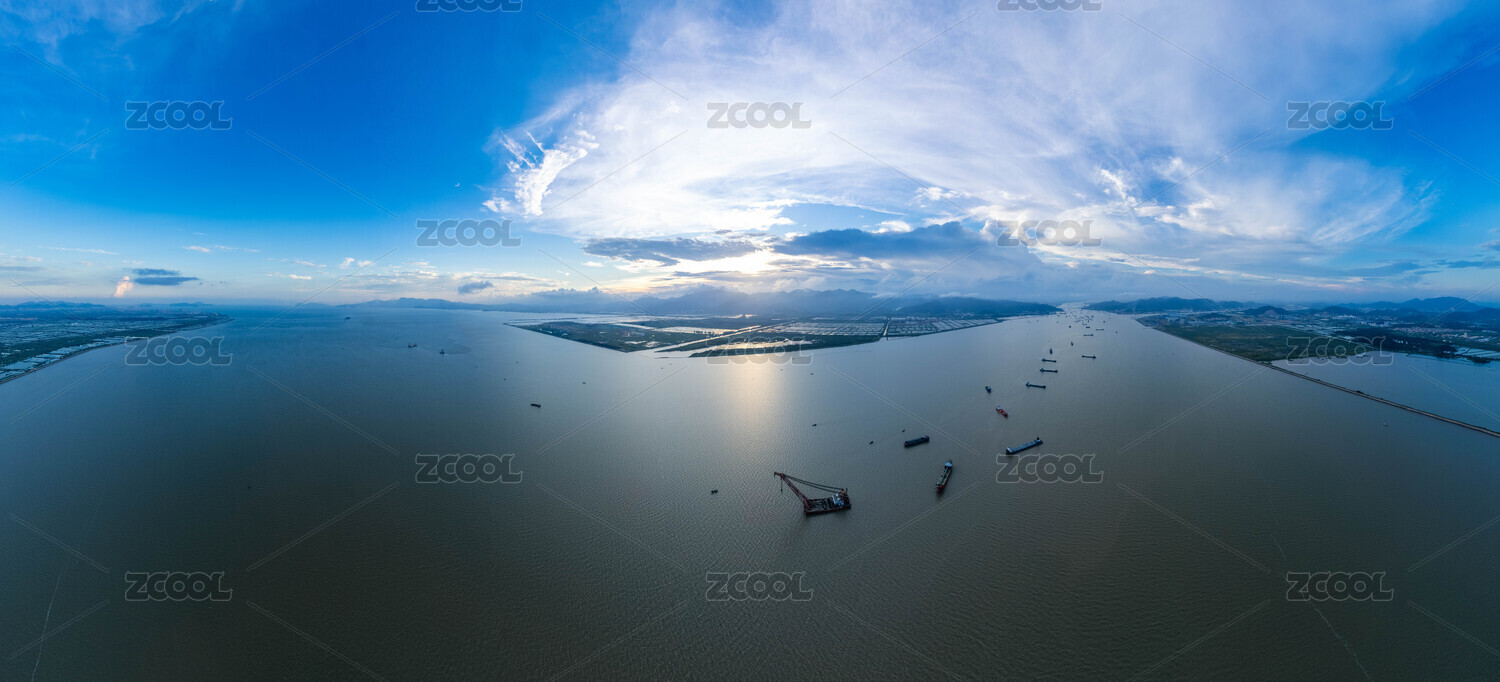 海岛,船,天空,吊桥,蓝色,航拍视角,水,桥,海港,建筑