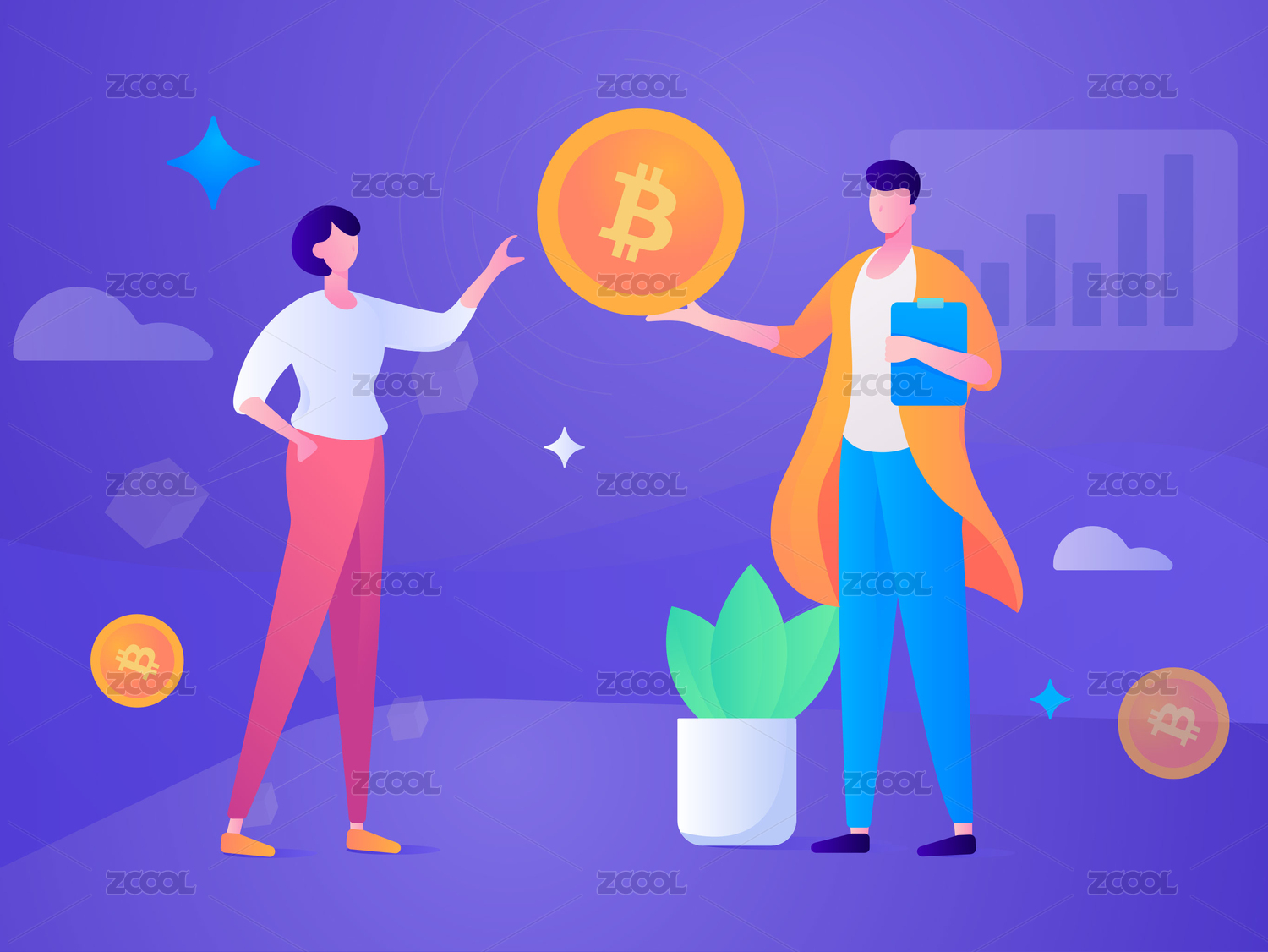 白色版本科技金融理财代币比特币CWV炒币潮流渐变人物矢量插画.eps