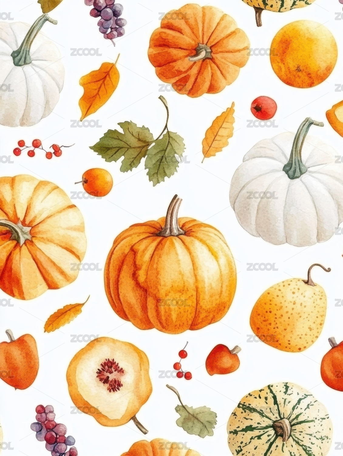 秋季南瓜卡通水彩图案