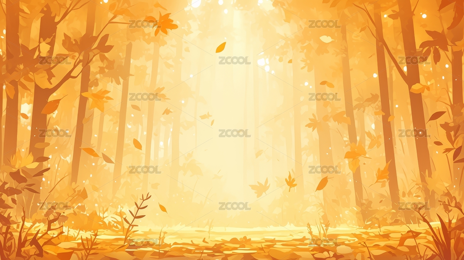 秋天的黄色森林卡通风景插画背景