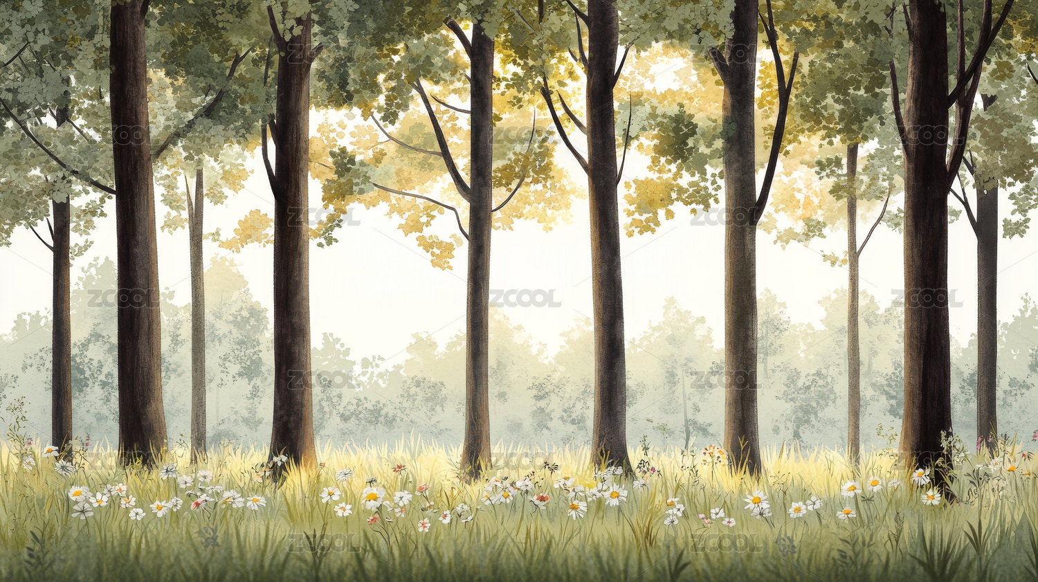 水彩风格森林风光