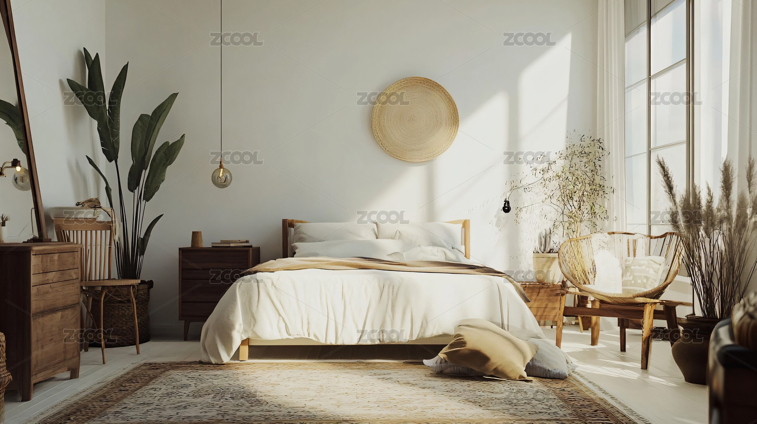 现代简约卧室自然光与绿植点缀