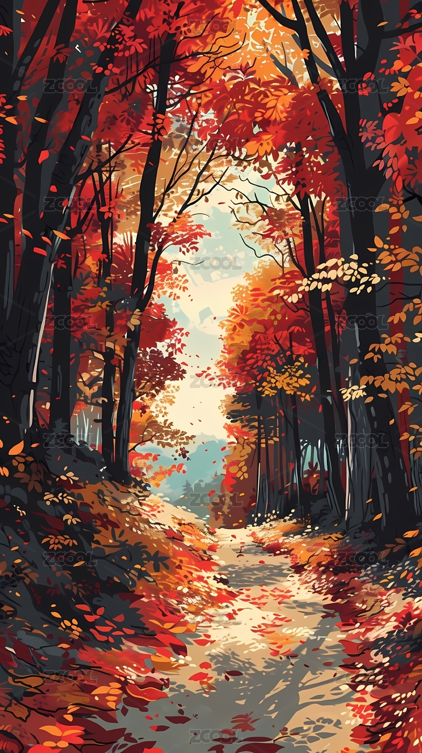 风景秀丽秋季道路穿过鲜艳橙色树叶