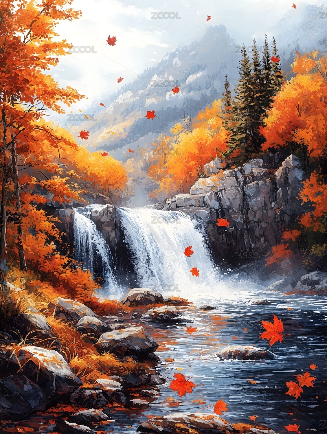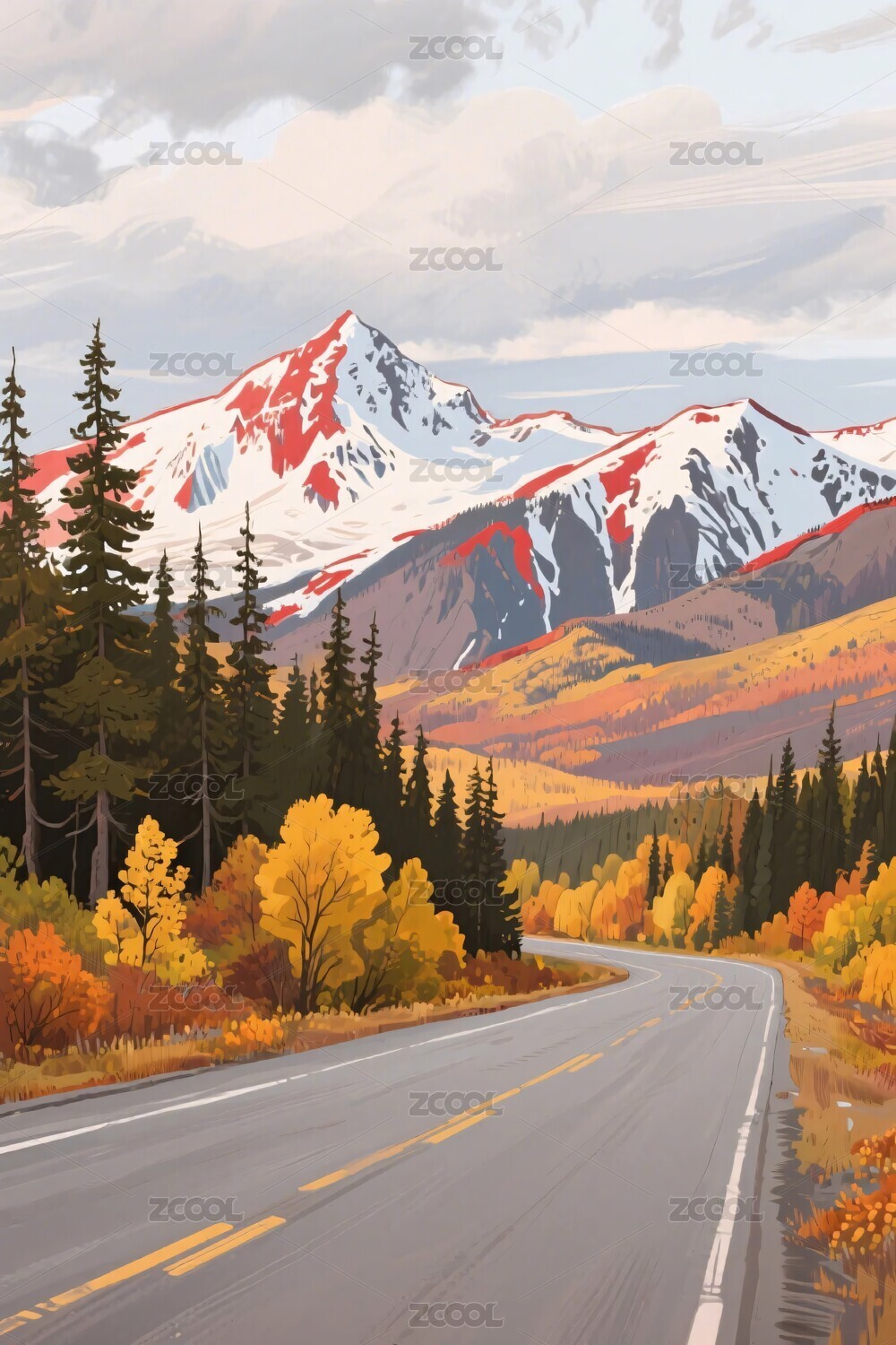 写实,秋天,落叶,公路,山脉,枫叶,雪山,延伸,远方,对称