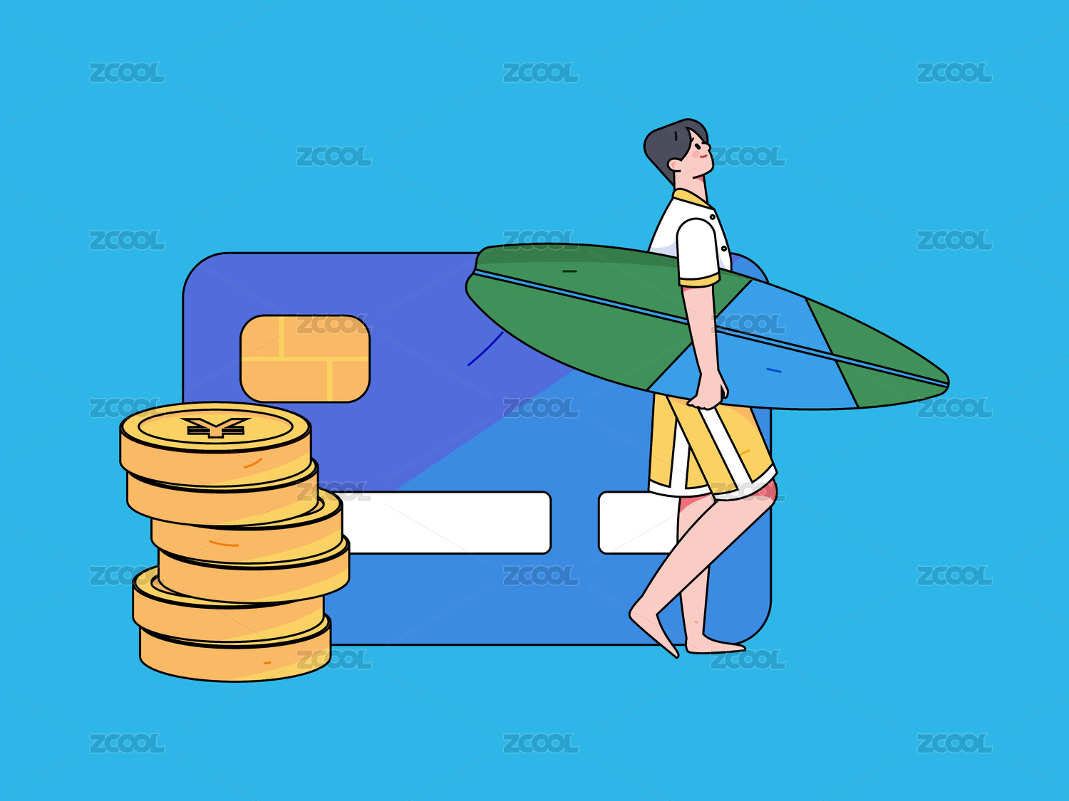 信用卡账单人物扁平矢量概念运营手绘插画